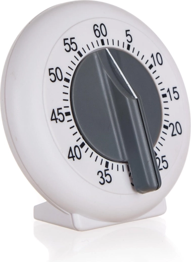 Le minuteur de cuisine mécanique CULINARIA, dans une élégante combinaison blanc‑gris, est l’assistant idéal pour chronométrer avec précision la cuisson, la pâtisserie et les tâches domestiques. Il suffit de tourner la commande sur le temps souhaité et le minuteur lance un décompte silencieux, au terme duquel retentit une alarme sonore nette.