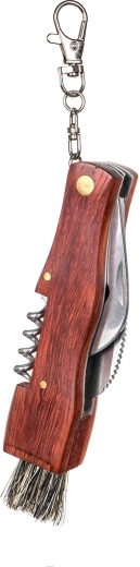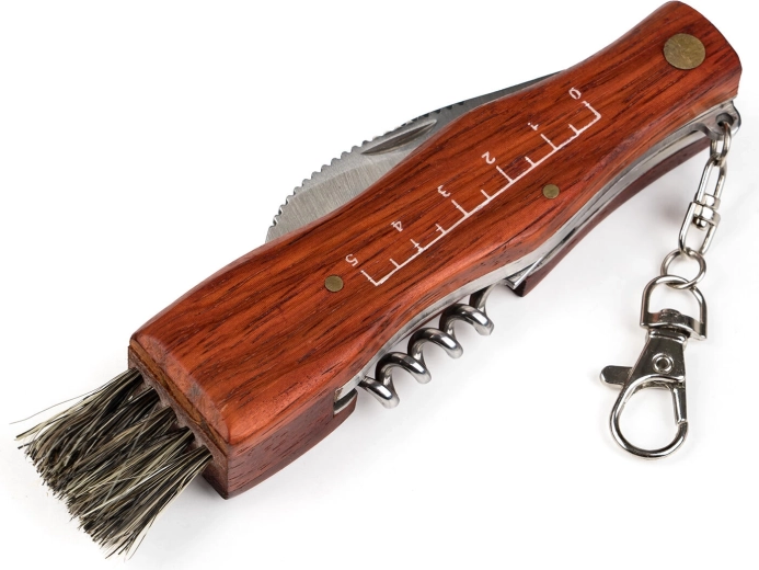 Le manche en bois offre une prise en main agréable et durable, tandis que le format pliant assure un transport sûr et compact. Un tire-bouchon est également inclus, idéal pour les déplacements et les pique-niques.