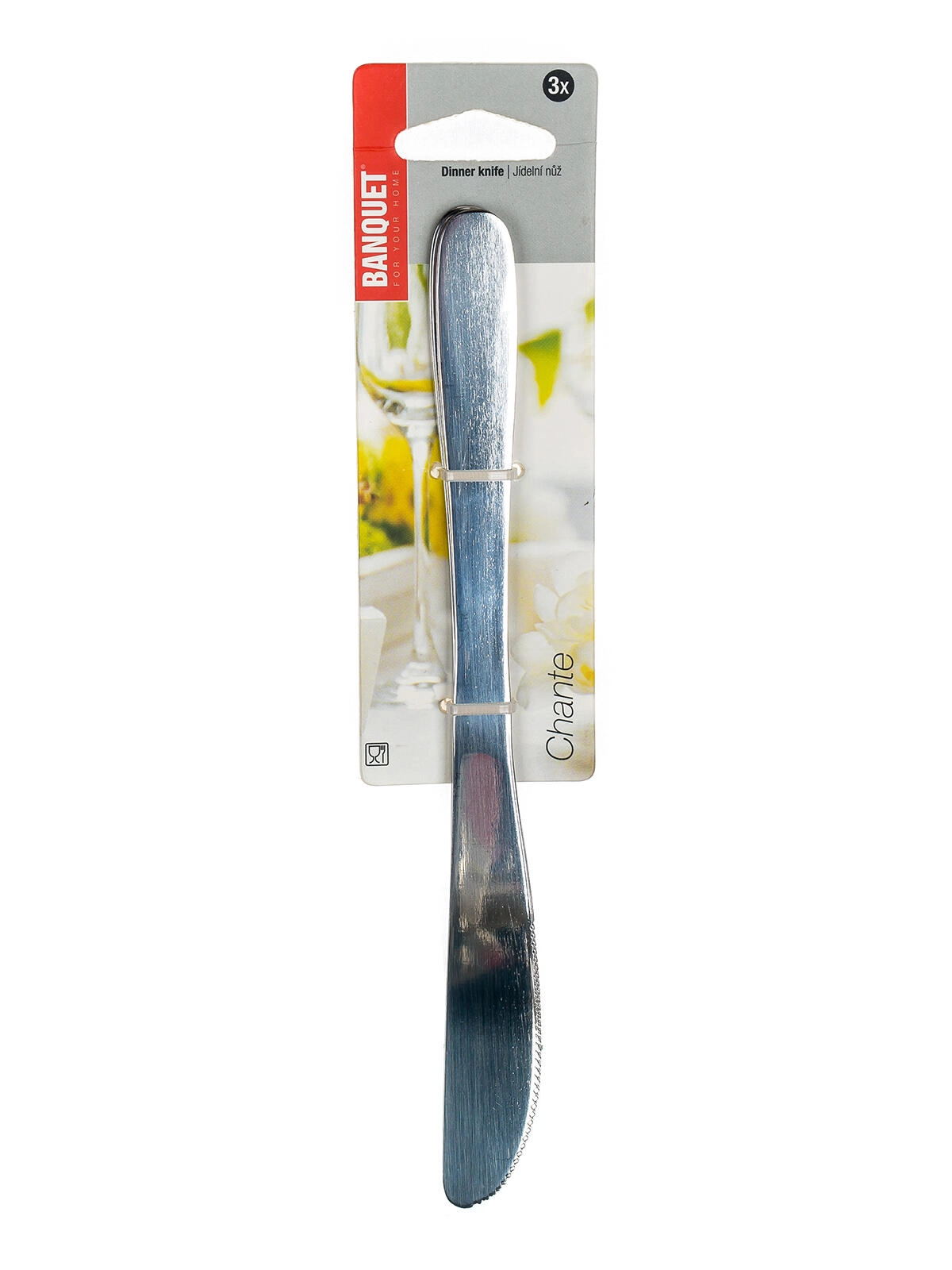 Couteaux de table CHANTE élégants en acier inoxydable de haute qualité pour un usage quotidien. Ils offrent une résistance, une finition brillante et une prise en main confortable grâce à une longueur équilibrée de 21 cm et une épaisseur de 2 mm. Fournis dans un lot pratique de 3 pièces.