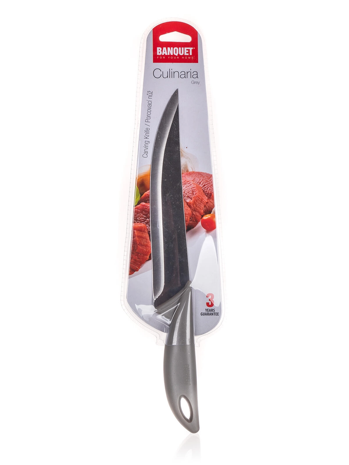Le couteau à découper de la gamme CULINARIA Grey est un choix idéal pour le travail quotidien en cuisine. Grâce à sa lame en acier de 20 cm, il permet des coupes fluides, la découpe de viande, de poisson et de gros morceaux de légumes. Le manche en plastique ergonomique assure une prise en main ferme et un confort même lors de découpes prolongées.