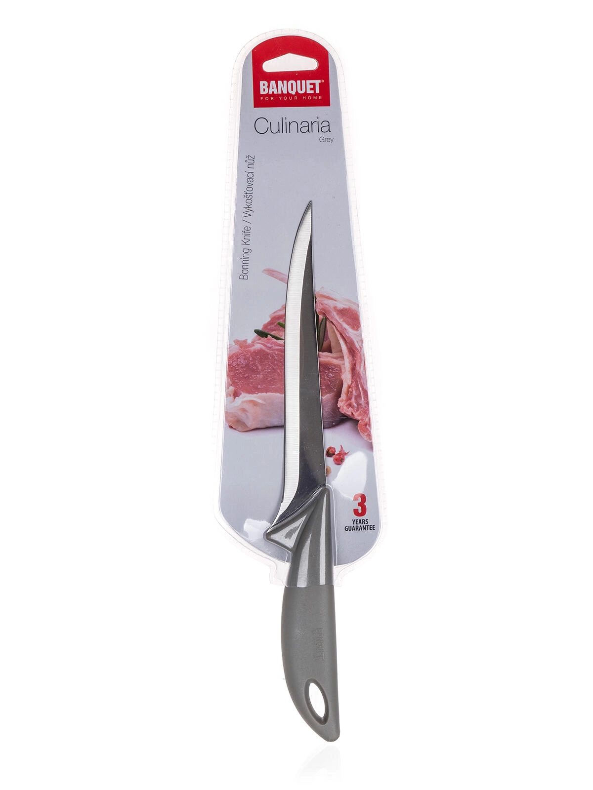 Pratique couteau à désosser avec lame de 18 cm de la collection CULINARIA Grey, idéal pour séparer avec précision la viande des os. La lame en acier assure une coupe nette et une longue durabilité, tandis que la poignée ergonomique en plastique offre une prise sûre et un travail confortable en cuisine.