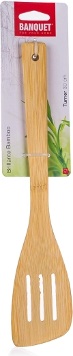 La spatule BRILLANTE BAMBOO en bois de bambou de qualité est un excellent choix pour la préparation de divers plats à la poêle comme à la casserole. Le bambou naturel est léger, solide et respectueux des surfaces, il ne raye donc pas les ustensiles en téflon ni en céramique.