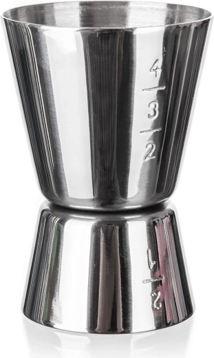 Simplifiez la préparation de vos boissons avec le jigger double face AKCENT. Un côté contient 20 ml, l’autre 40 ml, pour mesurer rapidement et avec précision liqueurs, sirops et jus. L’acier inoxydable poli résiste à la corrosion, n’absorbe pas les odeurs et s’entretient facilement.