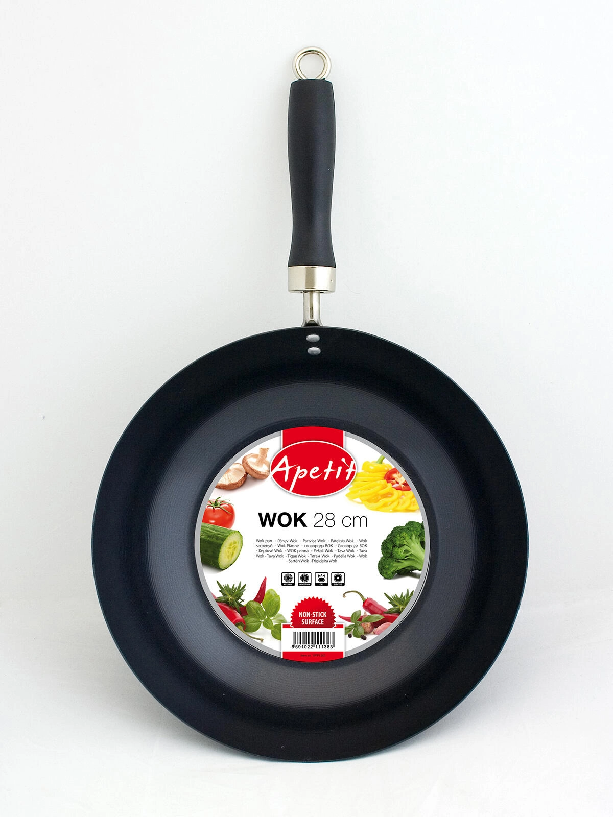 Le wok APETIT de 28 cm de diamètre est un excellent choix pour la friture rapide, le sauté et le stir-fry. L’acier au carbone avec un revêtement antiadhésif de qualité assure une chauffe homogène et un démoulage facile sans brûler les aliments.