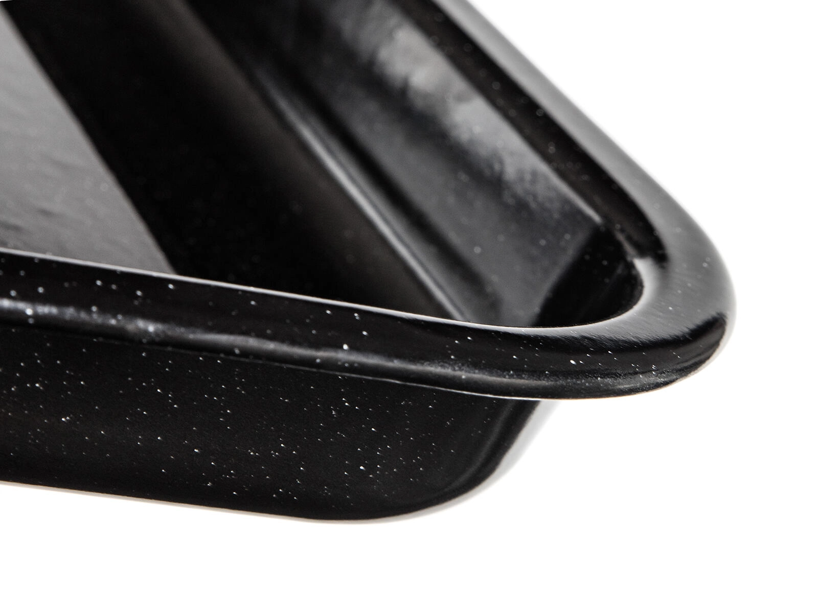 Le format 41 × 37 × 4 cm offre suffisamment d’espace pour préparer viandes, légumes, gratins et desserts. Les bords hauts aident à prévenir les écoulements de jus et gardent le four plus propre. Sa finition noire intemporelle s’harmonise parfaitement avec le reste de votre vaisselle.