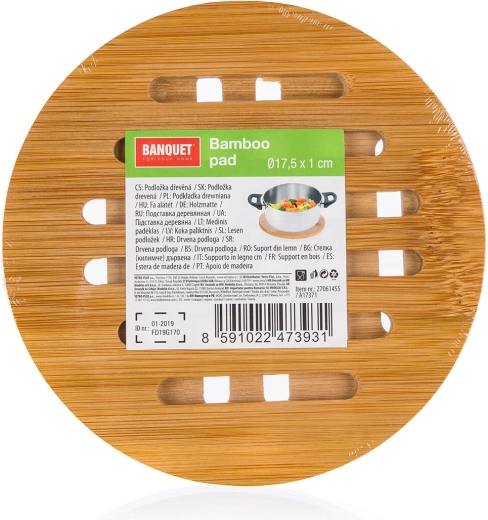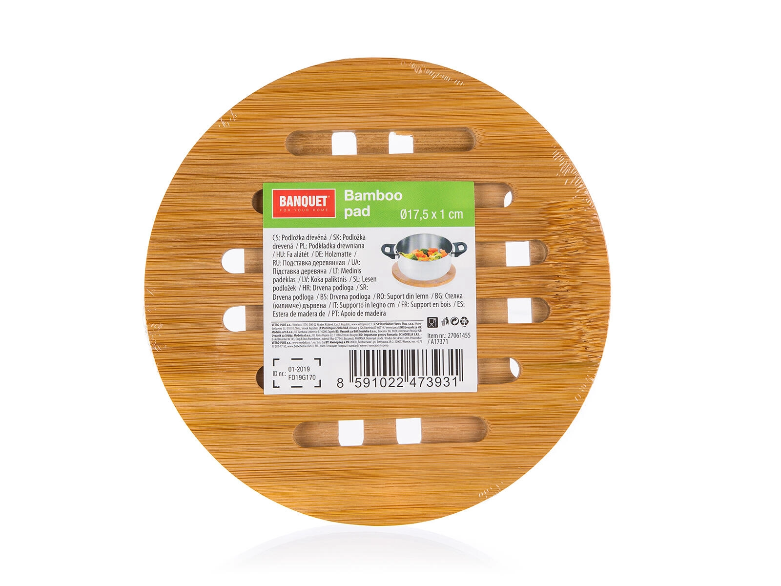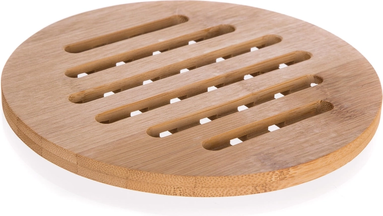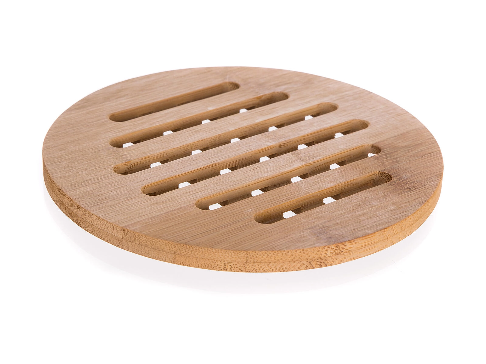 Dessous de plat en bambou BRILLANTE d’un diamètre de 17,5 cm protège fiablement la table et le plan de travail de la chaleur et des rayures. Il est fabriqué en bambou résistant, possède une hauteur de 1 cm pour une meilleure isolation et convient aux plats et boissons chauds comme froids.