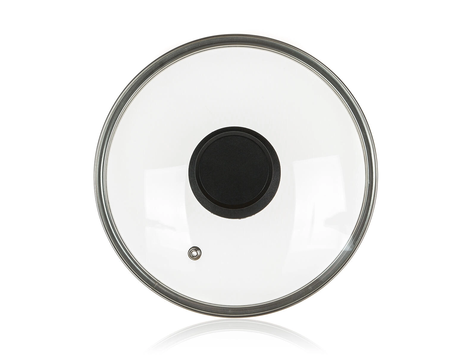 Le couvercle universel en verre AKCENT de 24 cm de diamètre ferme efficacement les poêles et casseroles, aide à conserver la chaleur et l’humidité et, grâce au verre transparent, permet un contrôle de la cuisson sans soulever le couvercle. Il dispose d’une poignée en bakélite résistante à la chaleur pour une prise en main sûre et d’un orifice d’évacuation de vapeur pour libérer l’excès de vapeur.