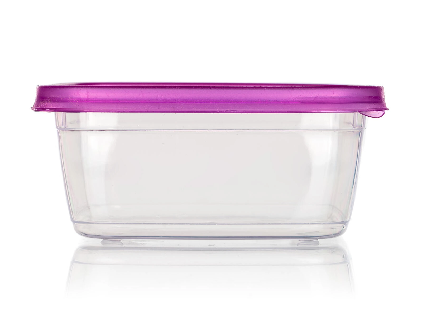 Boîte transparente, couvercle violet