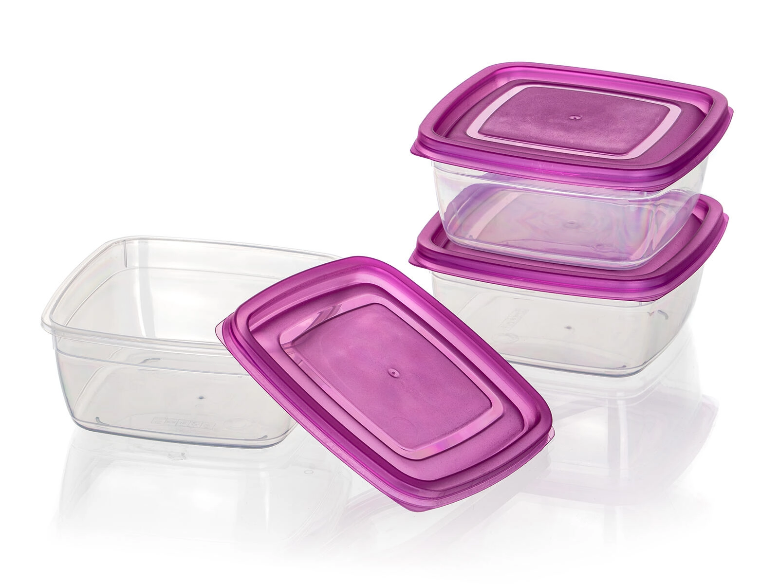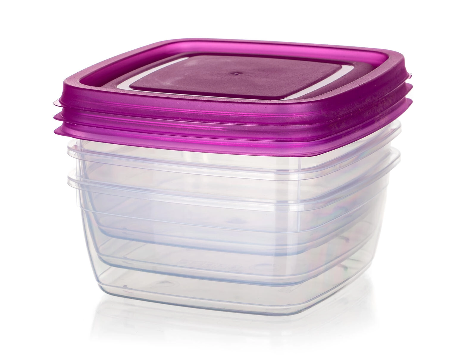 Avec cet ensemble compact de 3 boîtes carrées de 0,5 l, vous bénéficiez d’une solution astucieuse et esthétique pour le stockage des aliments. Les contenants transparents en plastique résistant facilitent le contrôle du contenu, tandis que les couvercles violets se clipsent en toute fiabilité pour aider à garder les aliments frais plus longtemps.