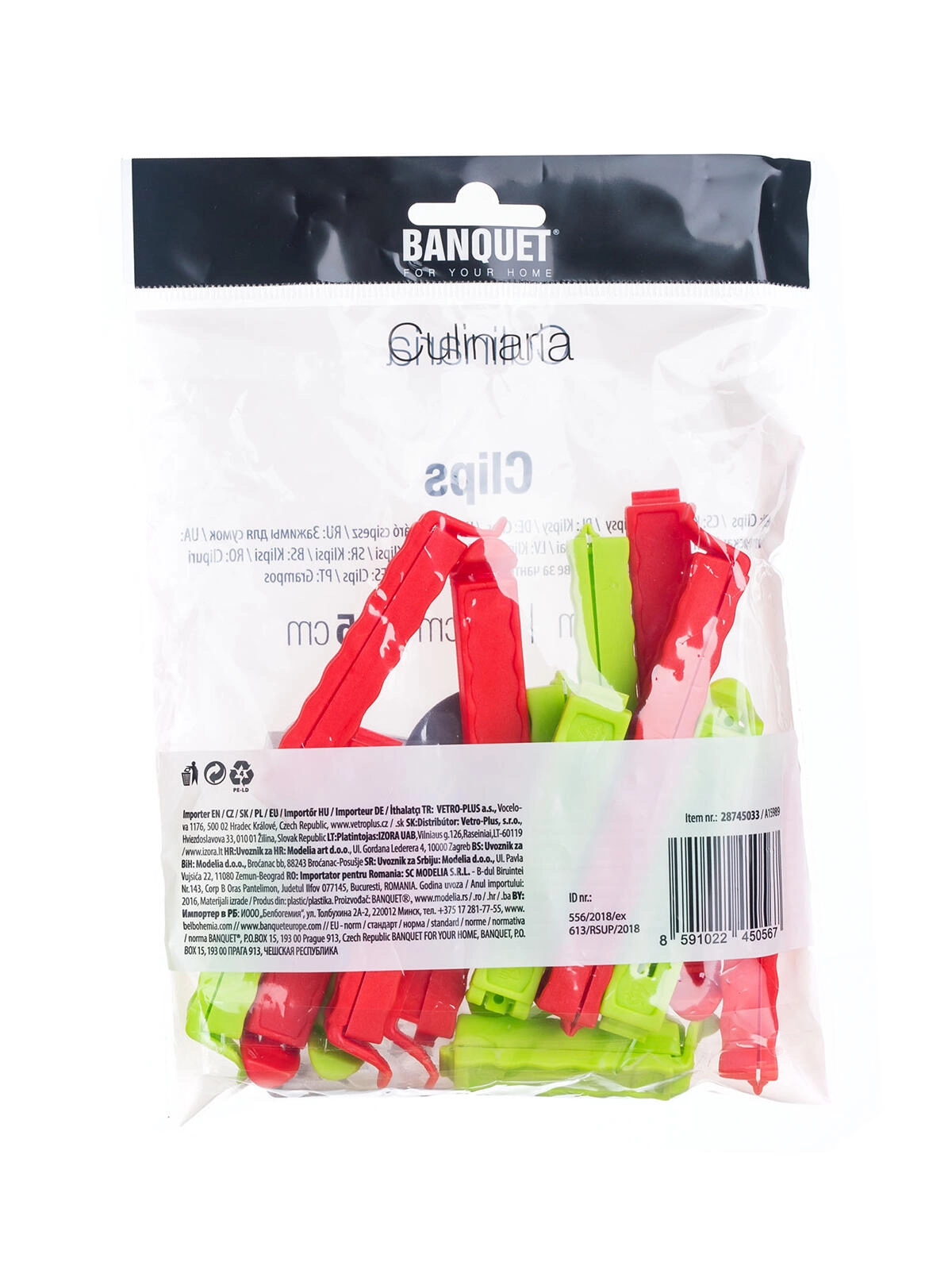 Avec ce lot universel de pinces CULINARIA, vous maintenez les sachets ouverts de boulangerie, pâtes ou snacks bien fermés. Les pinces tiennent fermement et aident à empêcher l’intrusion de poussière et d’autres impuretés, ce qui prolonge la fraîcheur des aliments. Grâce à trois longueurs pratiques, elles conviennent aux petits comme aux grands emballages.