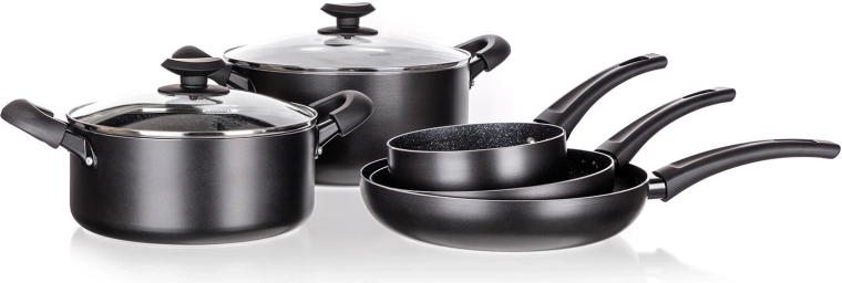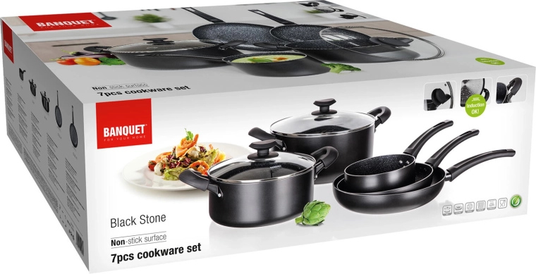 Batterie de cuisine Black Stone 7 pièces avec revêtement antiadhésif, induction
