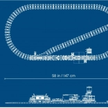 Inclus : un wagon à grumes, un wagon avec grue rotative et télescopique et un wagon avec deux conteneurs dotés de crochets sur le toit. Le set est complété par une tour de contrôle avec signalisation, une fourgonnette blindée, un chariot élévateur, une voie ovale et de nombreux accessoires (lingots d’or, billets, palettes, etc.).