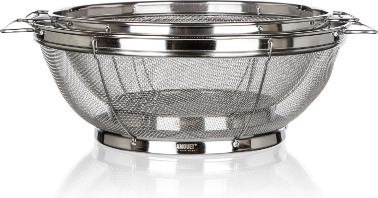 La maille inox extra fine retient même les petits morceaux d’aliments et assure un égouttage rapide lors du rinçage des fruits, des légumes et lors de l’égouttage des pâtes.