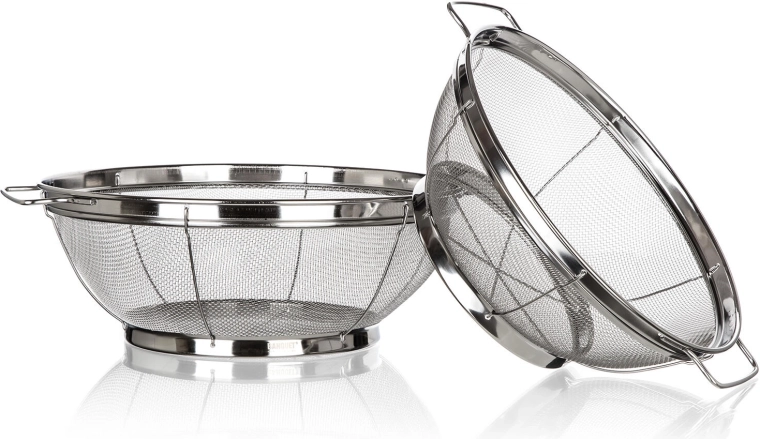 Les poignées latérales ergonomiques permettent un transport sécurisé même à pleine charge. Deux tailles pratiques dans un seul lot couvrent la plupart des tâches en cuisine – du lavage des fruits rouges à l’égouttage des pâtes ou des légumes.