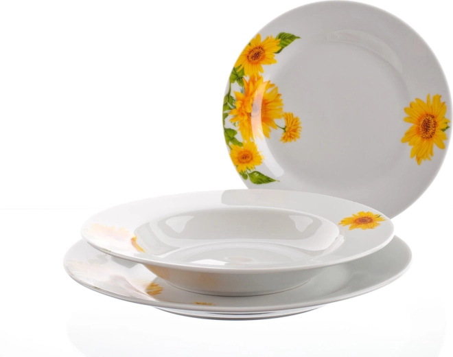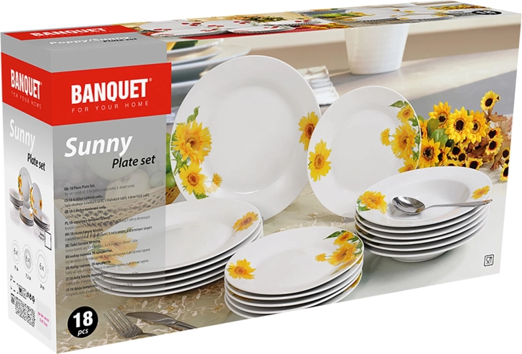 Le service de table SUNNY, en blanc intemporel avec un motif de tournesols, apporte joie et fraîcheur à votre intérieur. La porcelaine de qualité garantit un repas agréable, de la résistance et un entretien facile, tandis que la glaçure brillante souligne l’esthétique.
