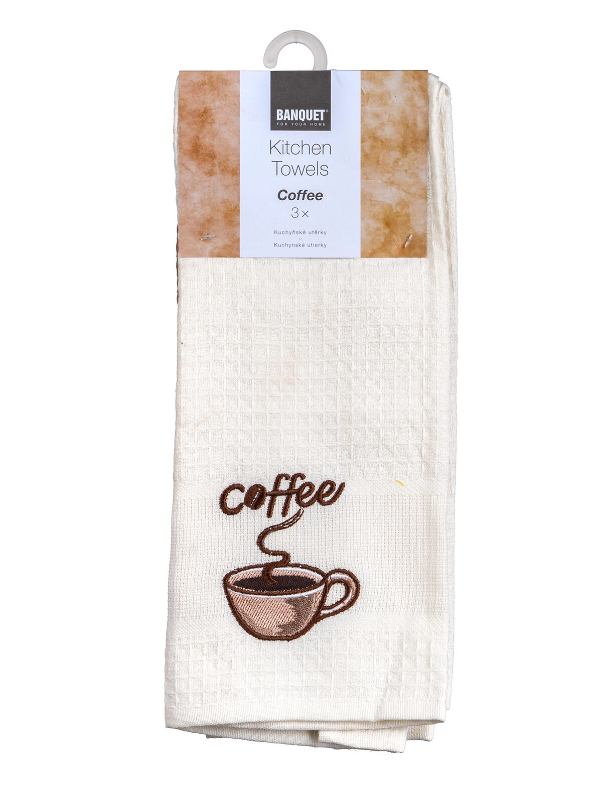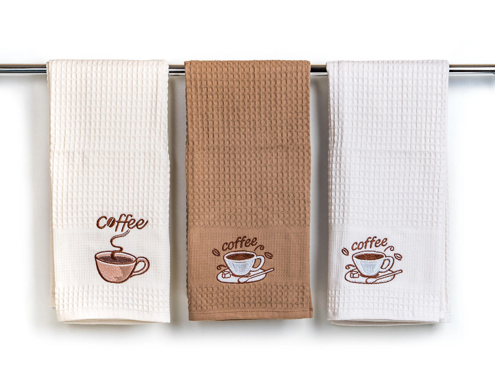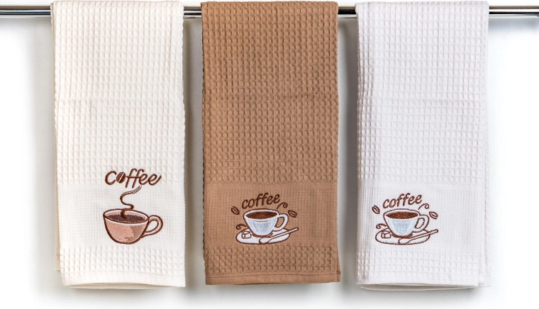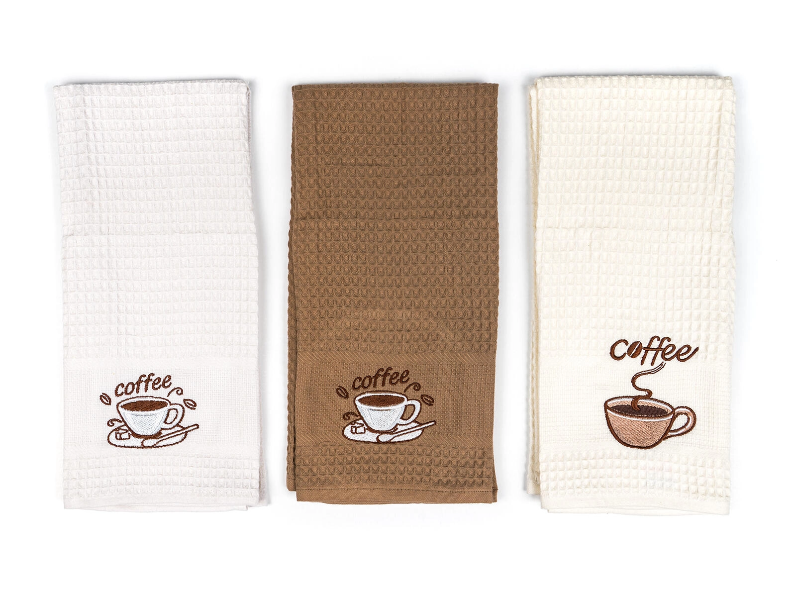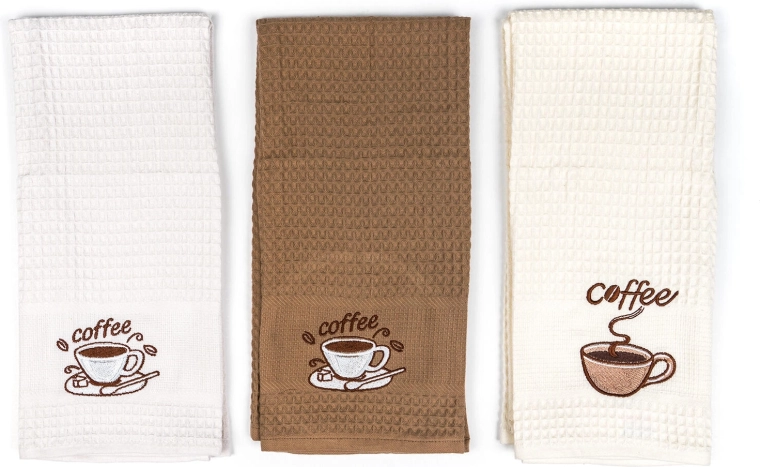 Torchons de cuisine gaufrés Coffee 45 × 70 cm, 100 % coton, lot de 3 pièces