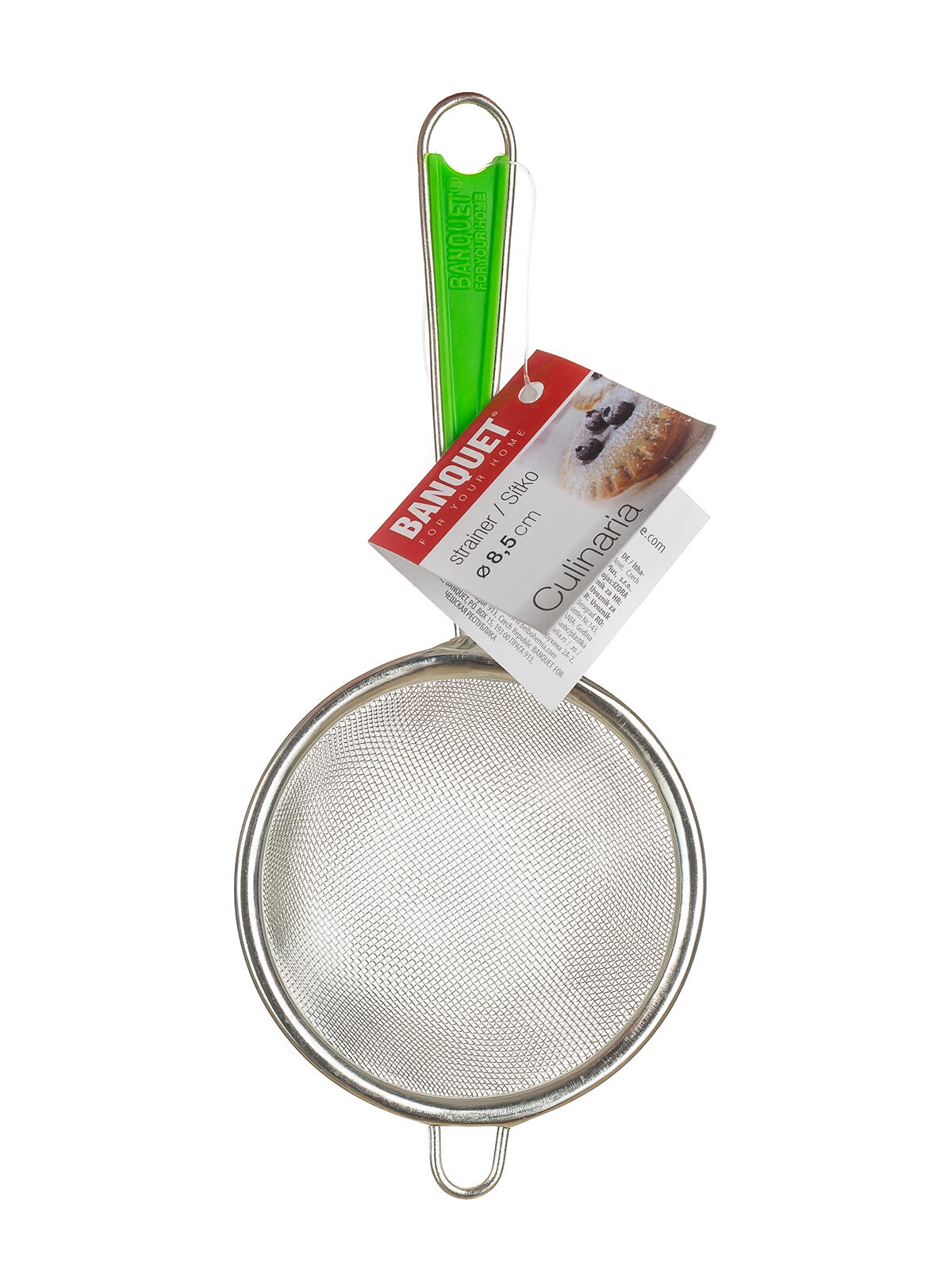 Pratique passoire de cuisine CULINARIA de 8,5 cm de diamètre pour filtrer au quotidien les liquides et les boissons. Grâce à sa maille fine 1 × 1 mm, elle retient même les plus petites impuretés ; le métal étamé assure la durabilité et l’insert en plastique ABS dans la poignée garantit une prise en main confortable et sûre. Son style vert s’intègre à toutes les cuisines.