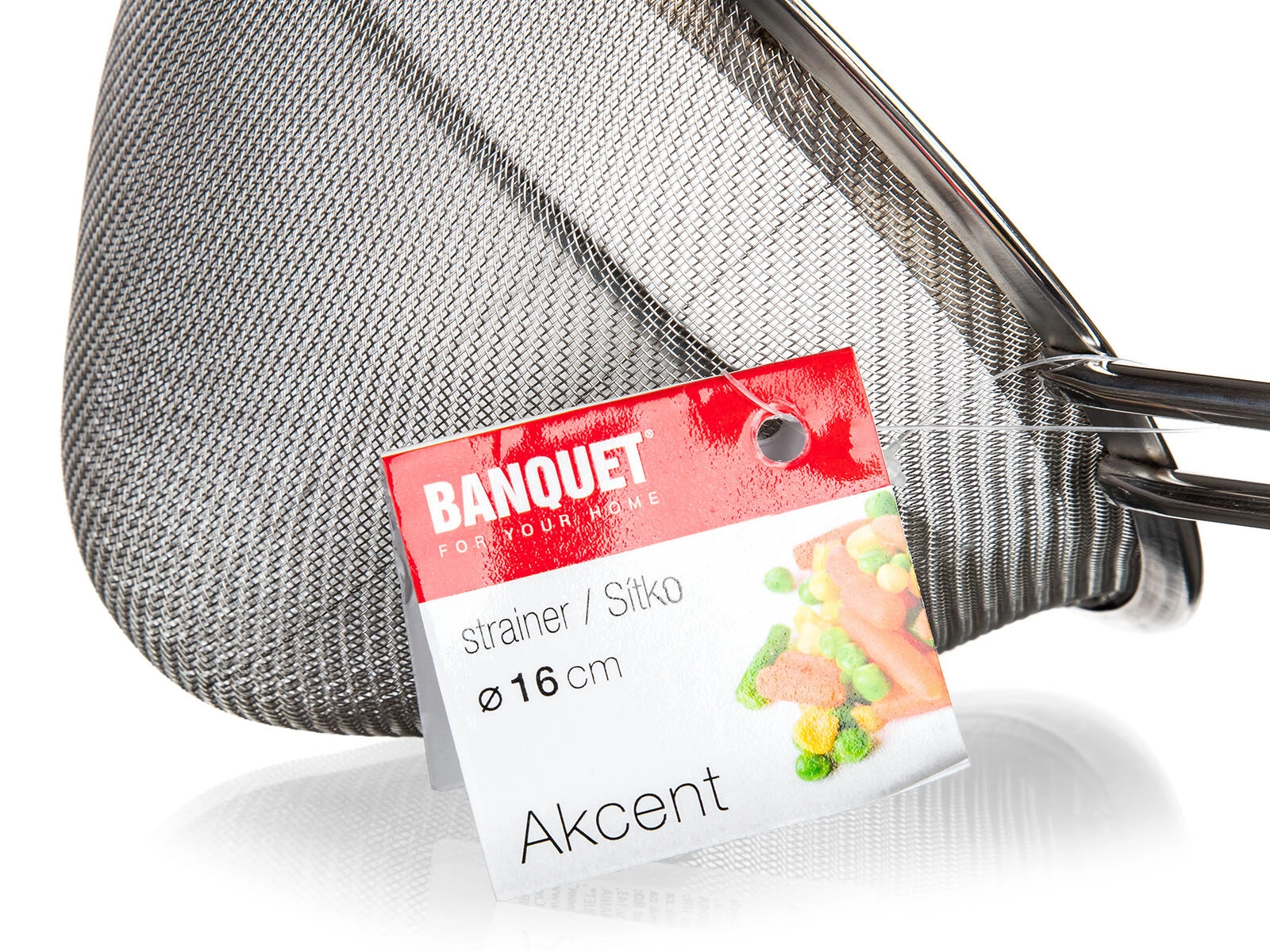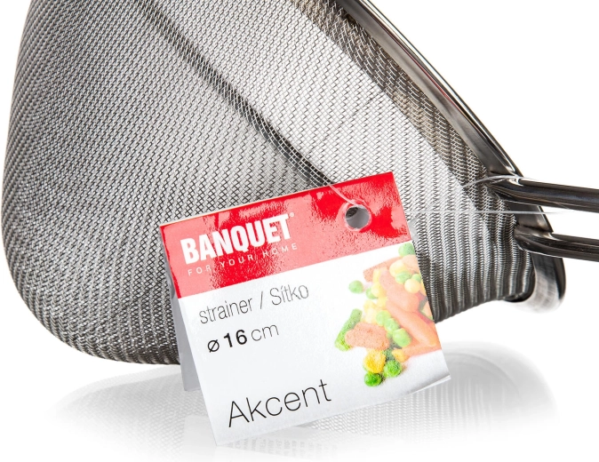 Pratique passoire conique en acier inoxydable AKCENT de 16 cm de diamètre, idéale pour filtrer les liquides, tamisser la farine et affiner les sauces. Grâce à sa maille métallique fine, elle retient même les plus petites impuretés et sa poignée allégée avec œillet permet une utilisation confortable et une suspension facile.