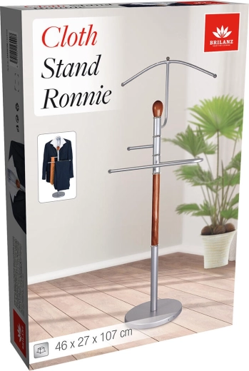 L’élégant valet muet RONNIE associe chrome mat et bois naturel de teinte brun moyen pour un dépôt de vêtements à la fois stylé et pratique. Grâce à sa base stable et à sa hauteur de 107 cm, il garde chemises, vestes et pantalons toujours bien à portée de main.