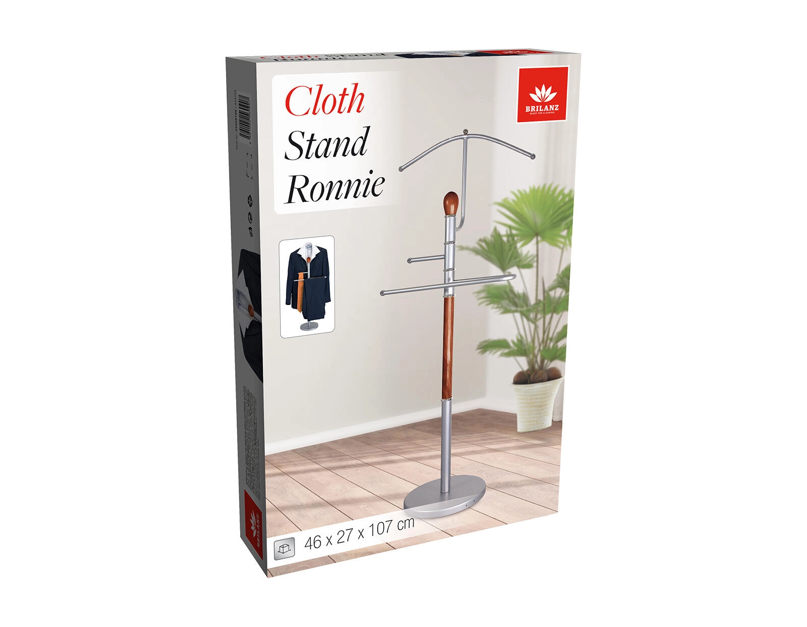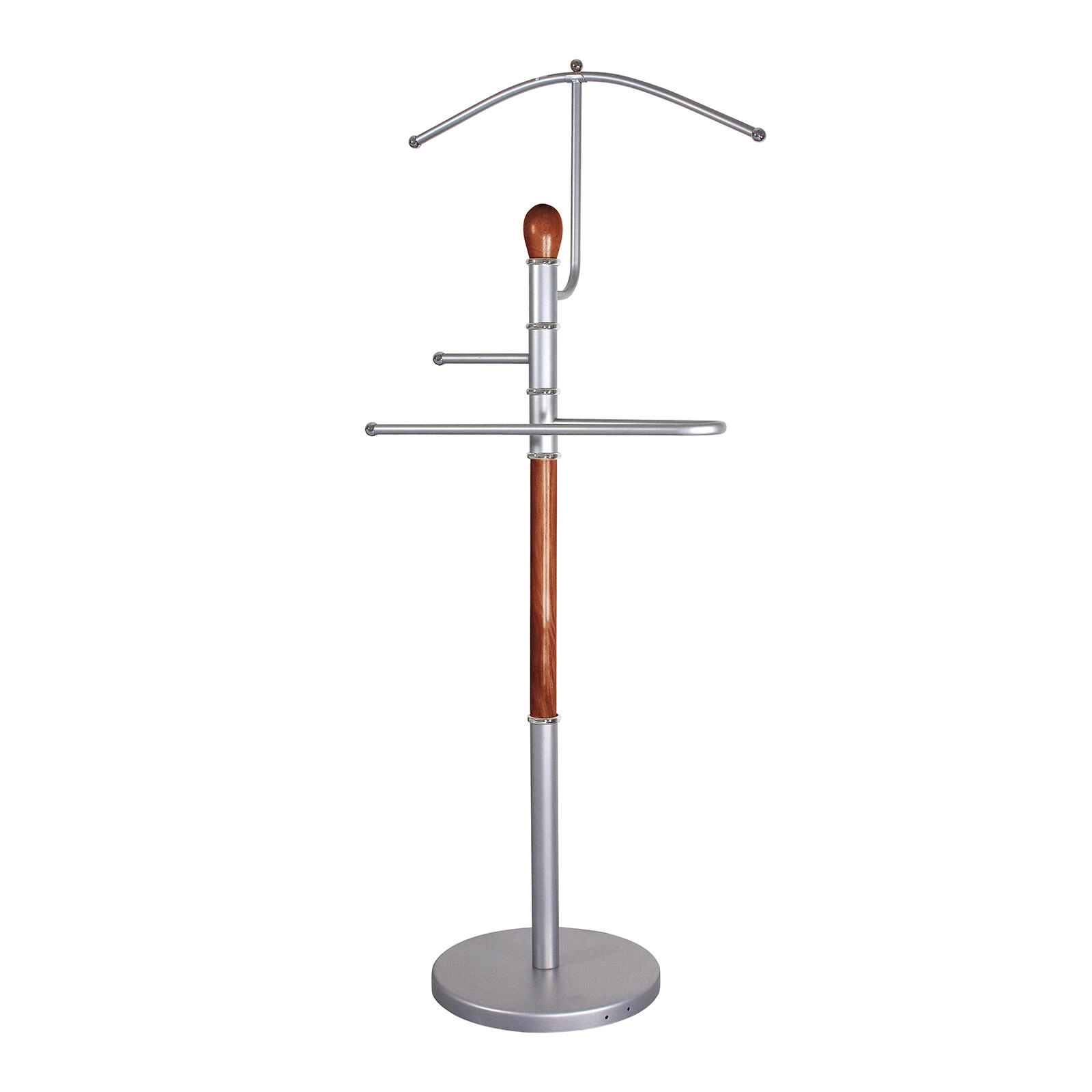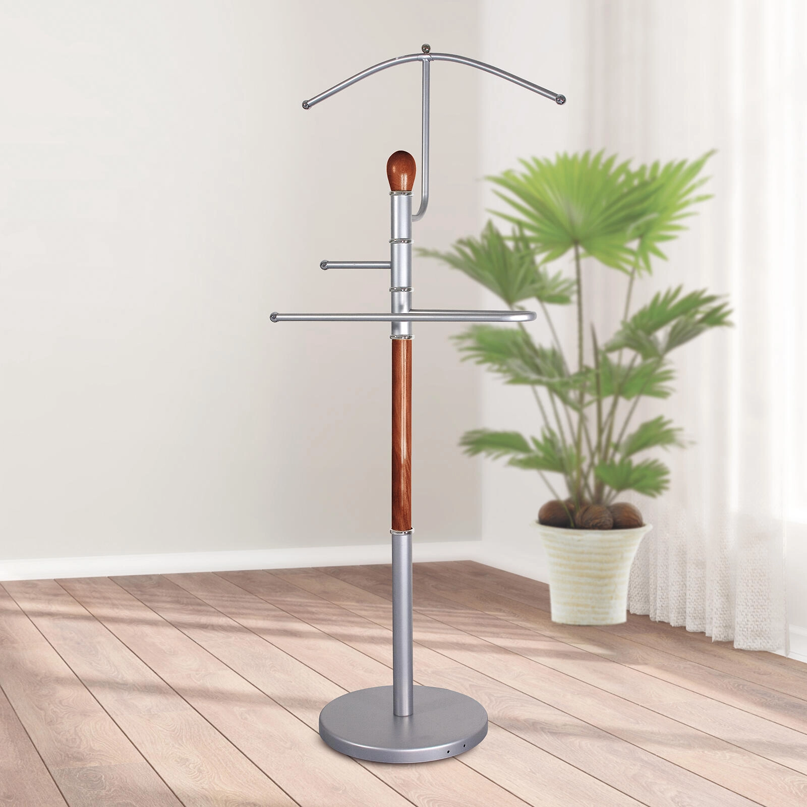 Le valet muet RONNIE est l’accessoire idéal pour la chambre, le dressing ou l’entrée. Il se distingue par la combinaison de chrome mat et de bois de qualité dans une nuance brune, apportant à l’intérieur un look à la fois moderne et intemporel. Sa conception pratique permet de déposer diverses pièces de vêtements afin qu’elles restent sans faux plis et prêtes à être portées.