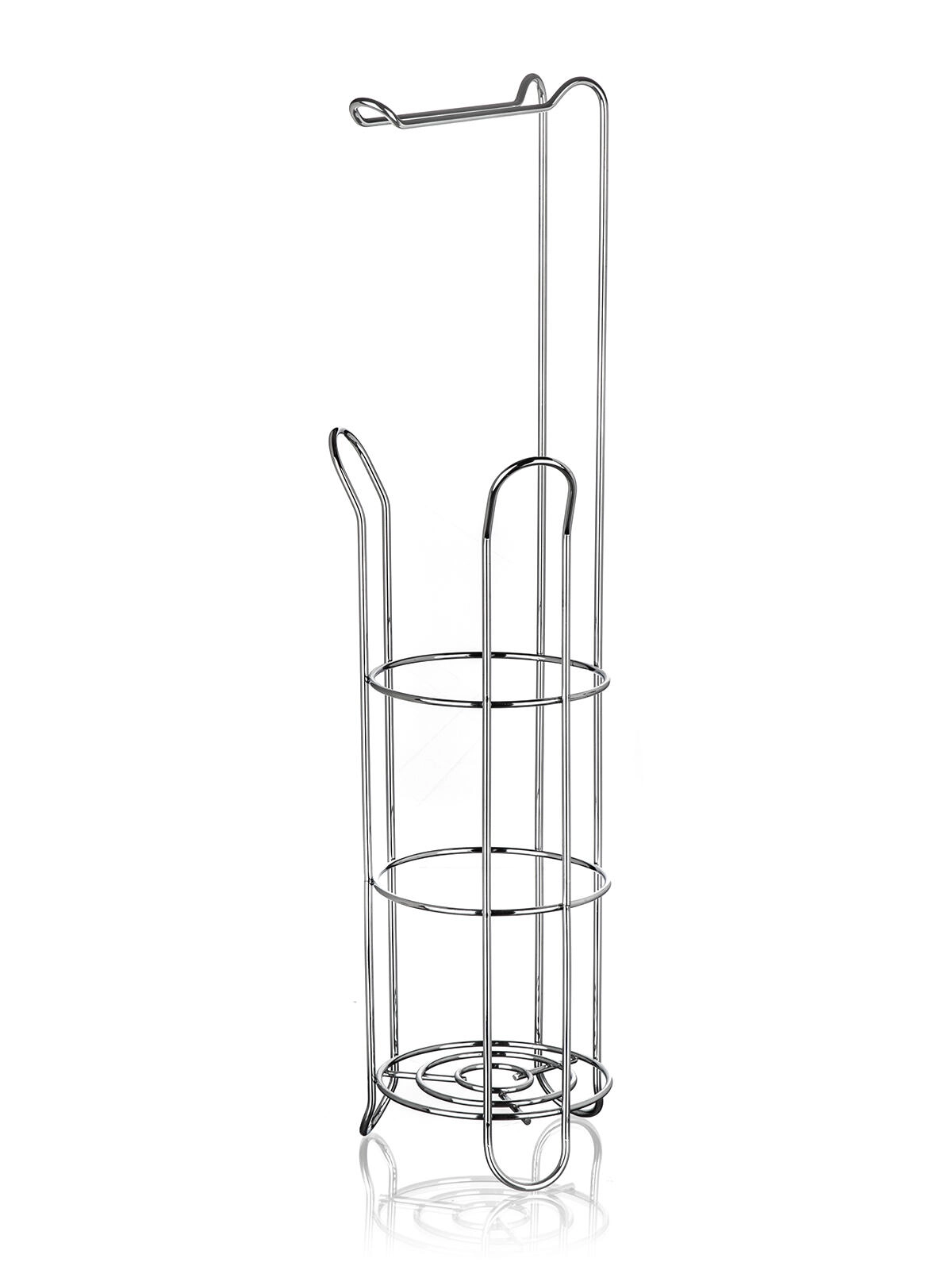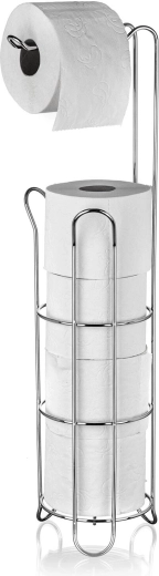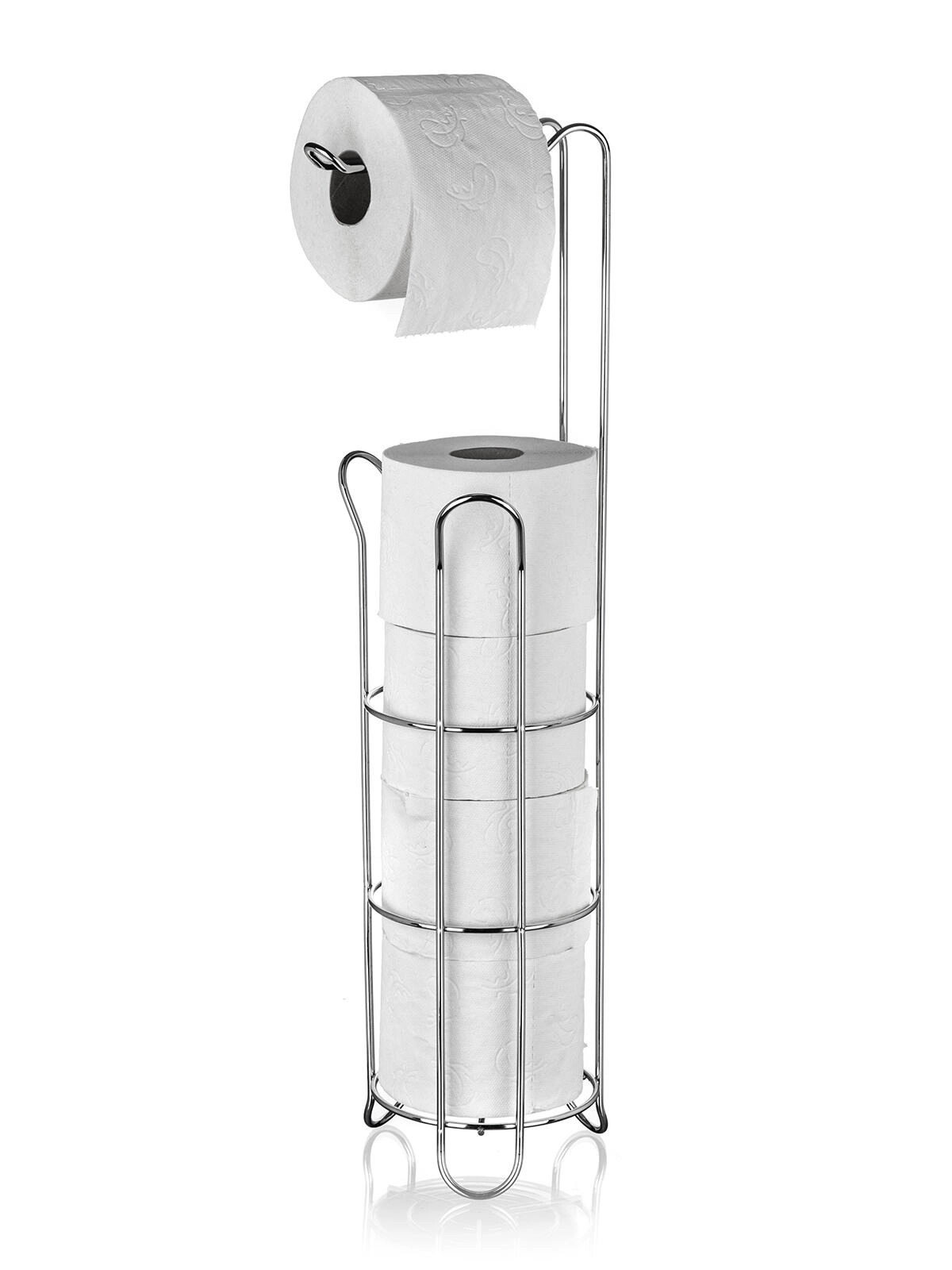 Gardez votre salle de bain ordonnée et élégante. Ce porte-papier toilette autoportant en chrome de qualité offre de la place pour plusieurs rouleaux de rechange et un déroulement pratique d’un rouleau en haut. Grâce à son profil élancé, il s’intègre aussi dans les petites salles de bain et WC.