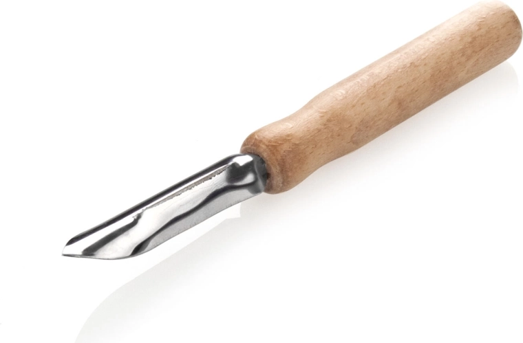 Éplucheur de cuisine pratique de 16,3 cm pour éplucher rapidement les pommes de terre et les légumes. Il possède une lame tranchante en acier inoxydable pour une coupe nette et un manche ergonomique en hêtre au fini naturel pour une prise en main confortable et un look élégant.