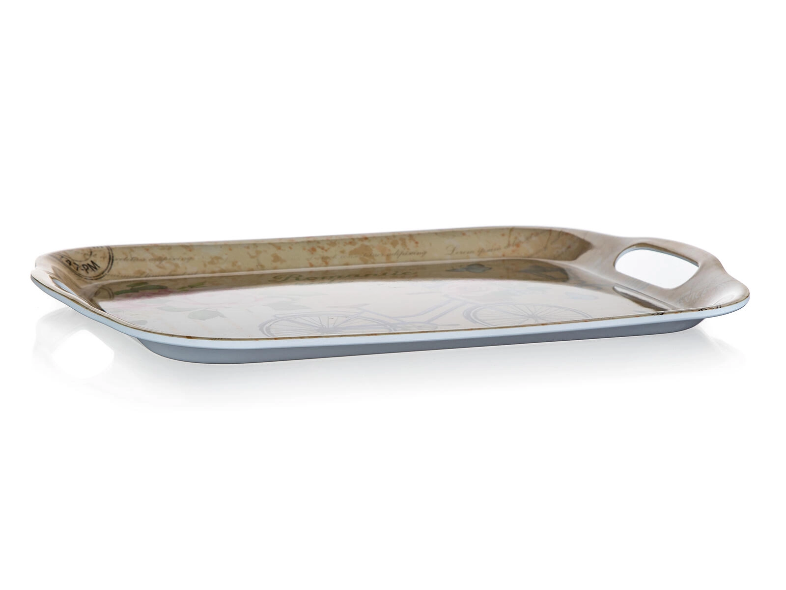 Ce plateau de service élégant au motif vintage de fleurs, de papillons et de vélo est un accessoire pratique pour chaque foyer. La résine mélaminée garantit une grande résistance tout en offrant une faible masse, ce qui facilite la manipulation au quotidien.