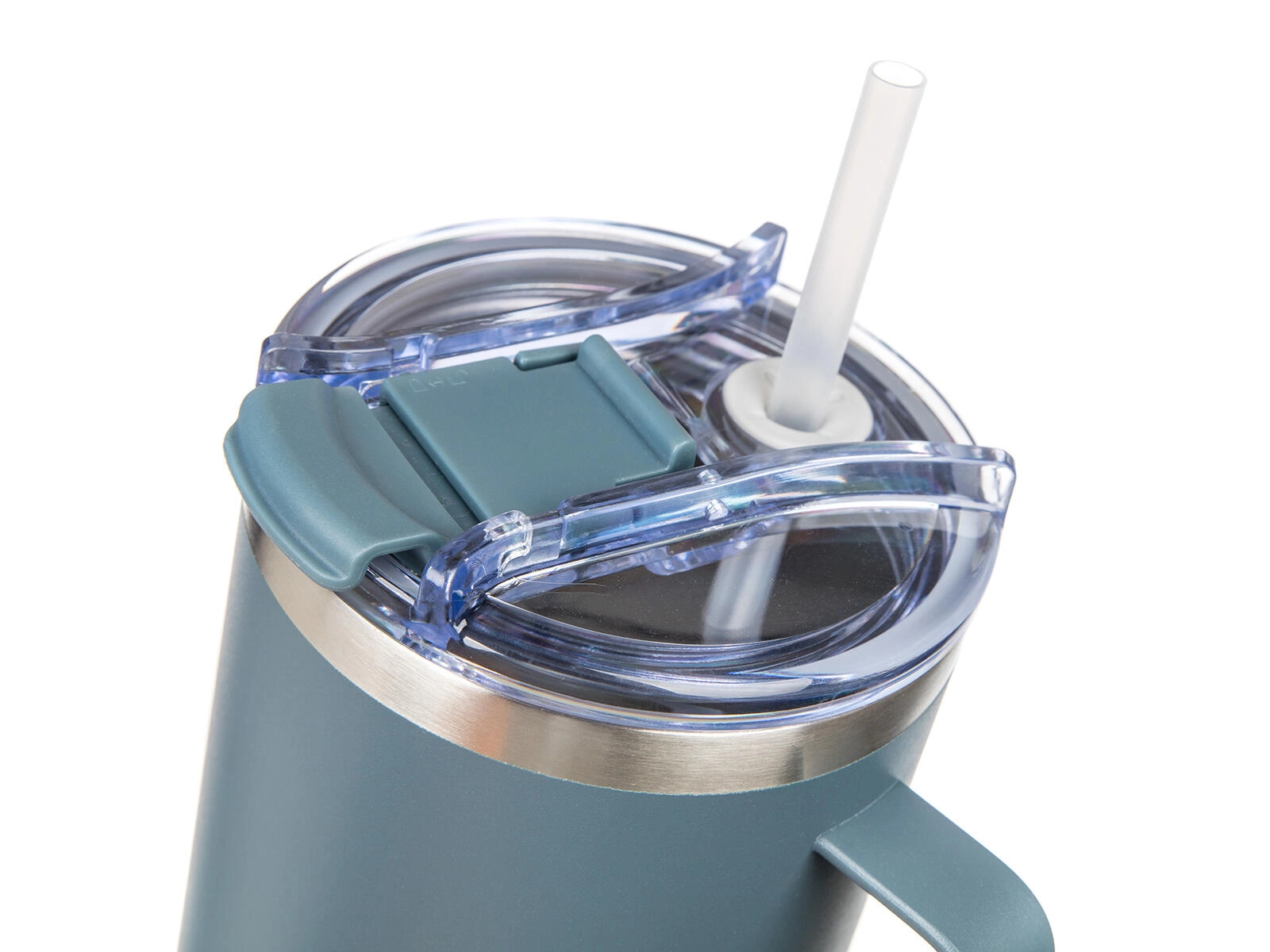 • Couvercle avec ouverture pour paille — boisson rapide sans renversement, paille + brosse incluses.