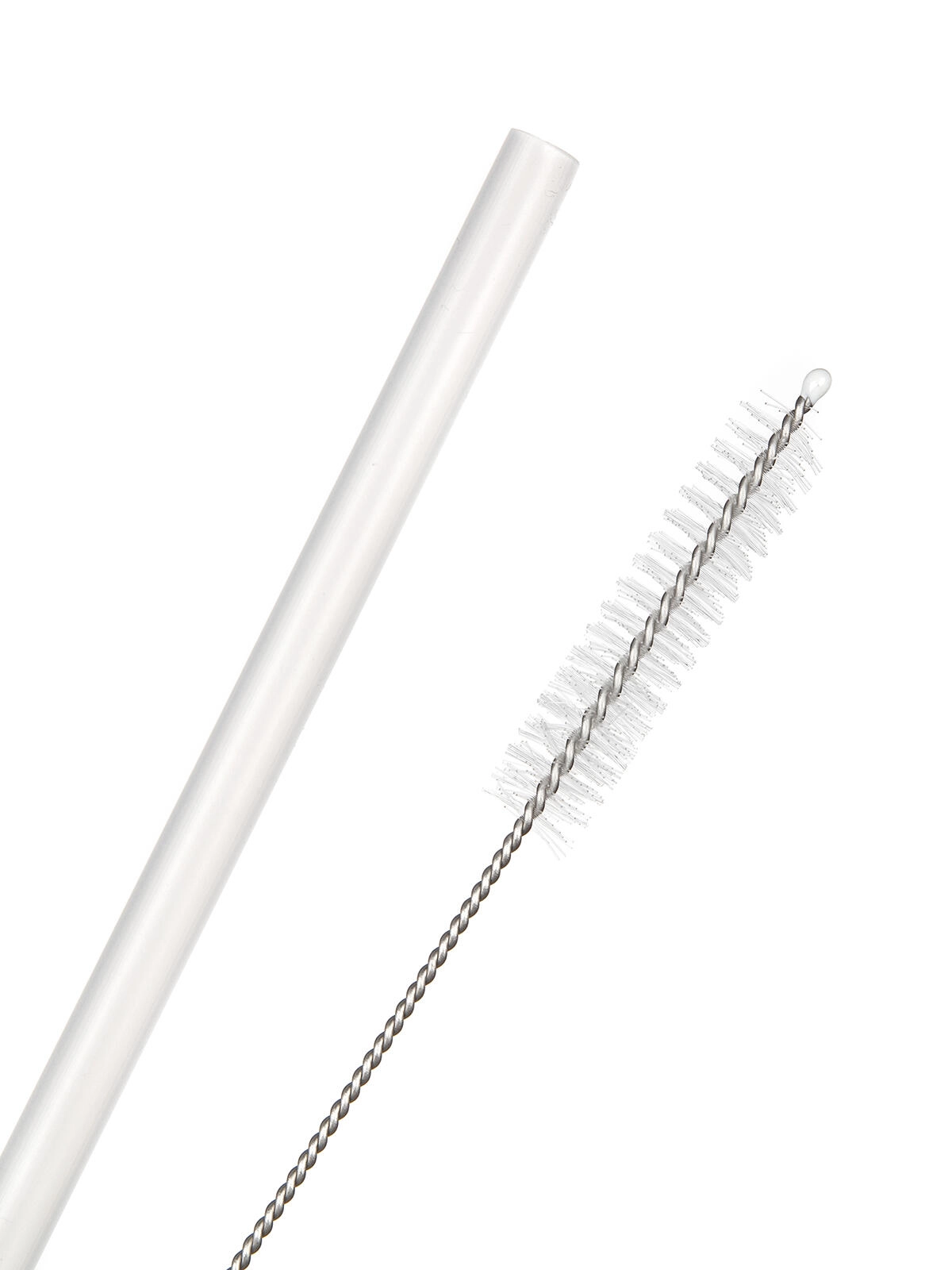 Le couvercle transparent avec ouverture permet de boire directement ou via la paille PP fournie. Une brosse est incluse pour un nettoyage facile.