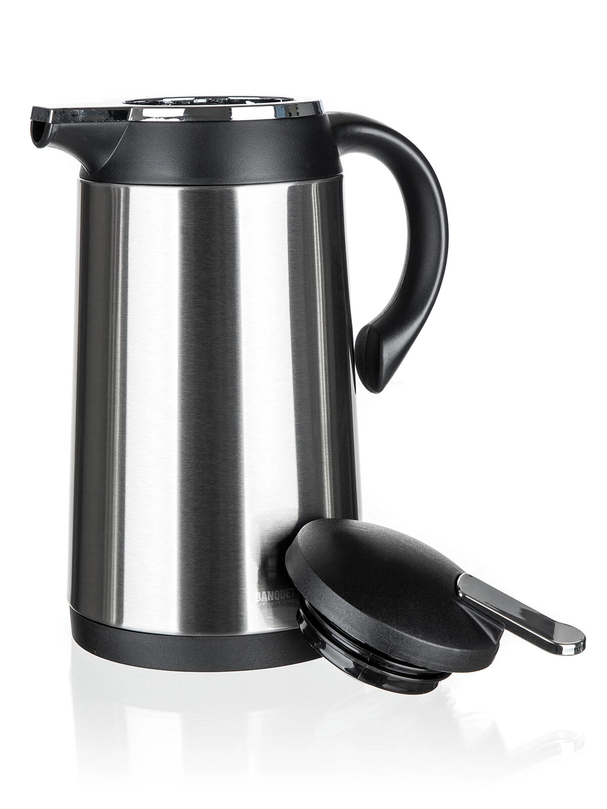 Grâce à la combinaison des matériaux – acier inoxydable, plastique PP (couvercle et poignée), ABS chromé et joint en silicone – la carafe est fiable, bien étanche et facile à entretenir. Adaptée au café, au thé et aux boissons froides, sa capacité de 1 L est parfaite pour un usage quotidien.