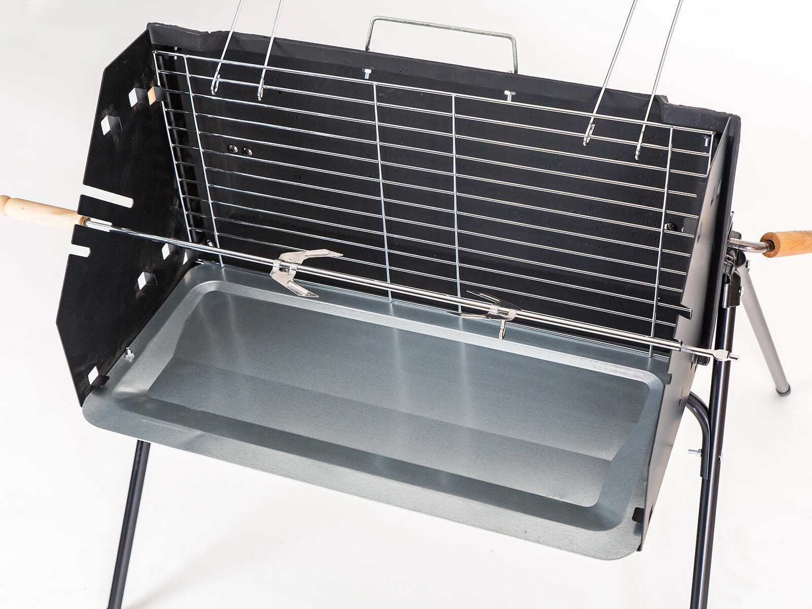 • Rôtissoire incluse – broche tournante avec deux fourches doubles pour une tenue sûre de la viande.