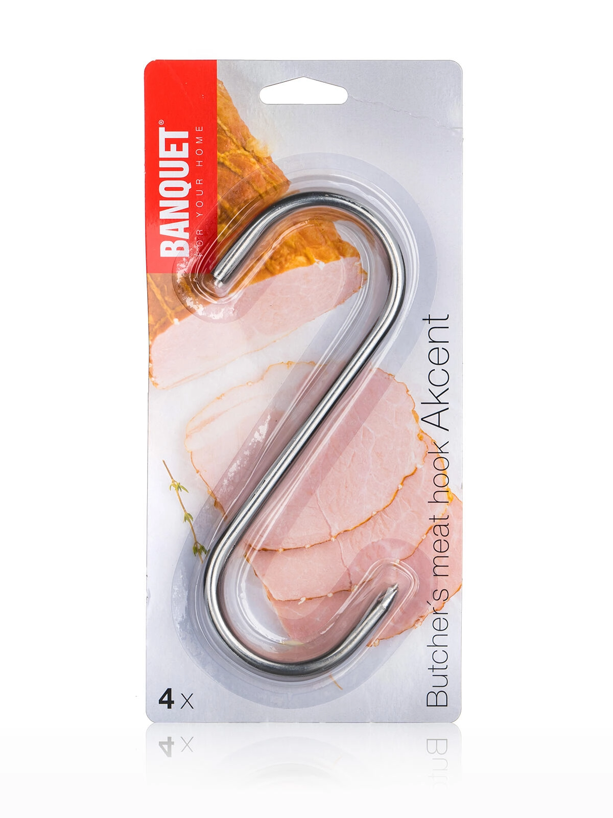 Crochets pratiques pour fumoir AKCENT en acier inoxydable de qualité pour une suspension de la viande sûre et stable. Grâce aux dimensions 16 × 12 cm et au fil de diamètre 6 mm, ils sont solides, résistants et hygiéniques. L’emballage contient 4 pièces, adaptées à un tube de suspension d’un diamètre jusqu’à 50 mm.