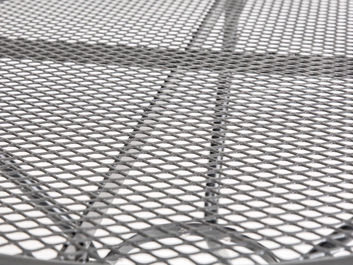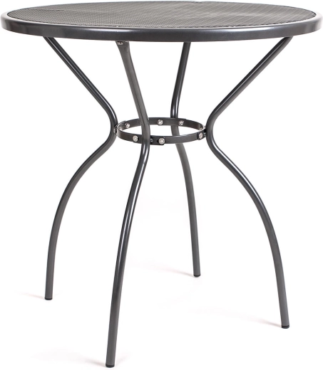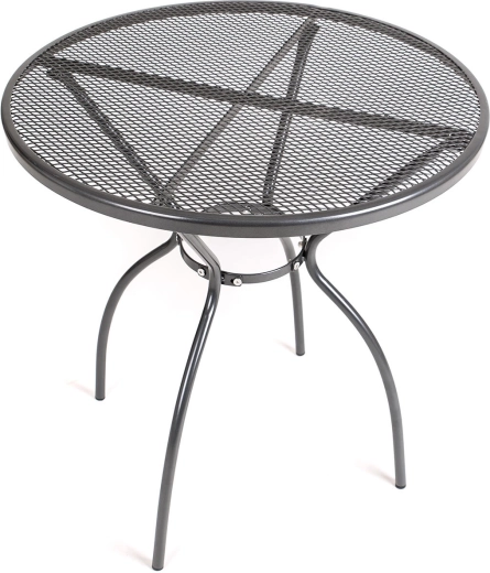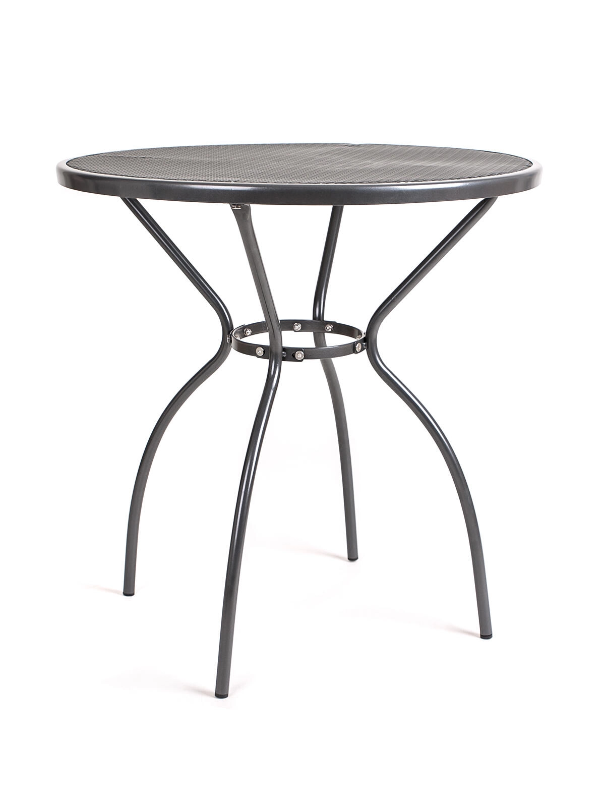 Le plateau perforé (maillé) permet une évacuation rapide de l’eau et un nettoyage facile, tandis que les pieds tubulaires robustes avec capuchons inférieurs protègent les surfaces et augmentent la stabilité. La table convient comme table de bistrot, table d’appoint ou petite table à manger pour les espaces extérieurs.