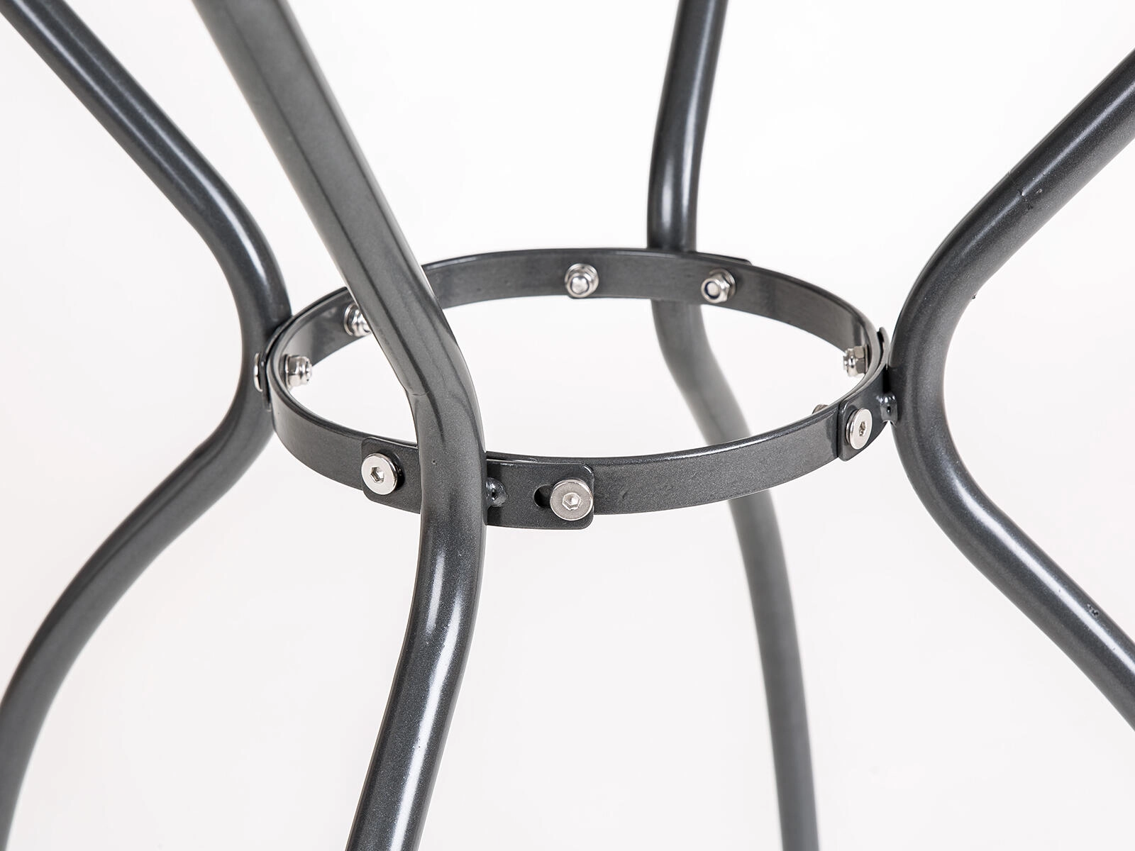 Le cadre solide avec renfort circulaire entre les pieds offre une excellente stabilité et une longue durée de vie, même en usage extérieur fréquent.