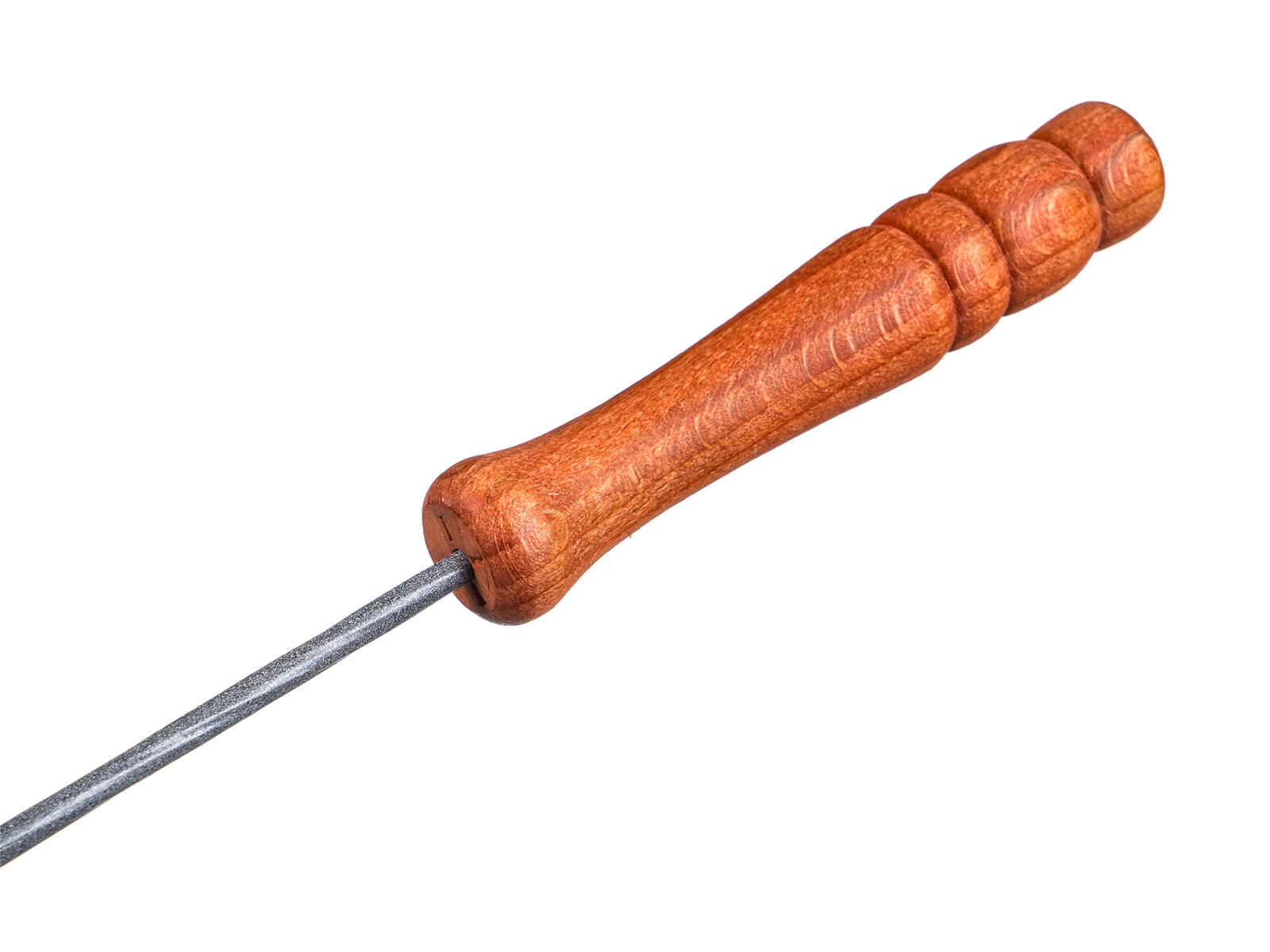 Le manche en bois agréable en main offre une prise confortable et améliore le contrôle lors du retournement et de la manipulation au-dessus du feu.