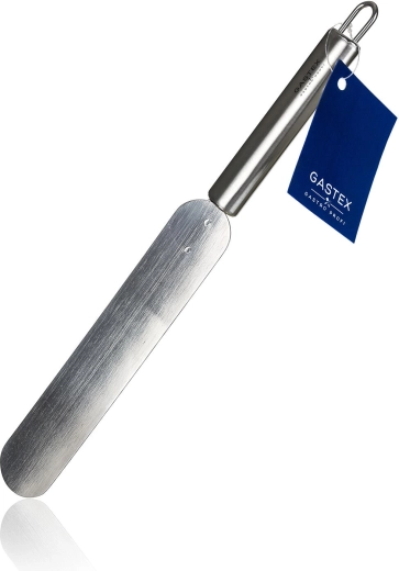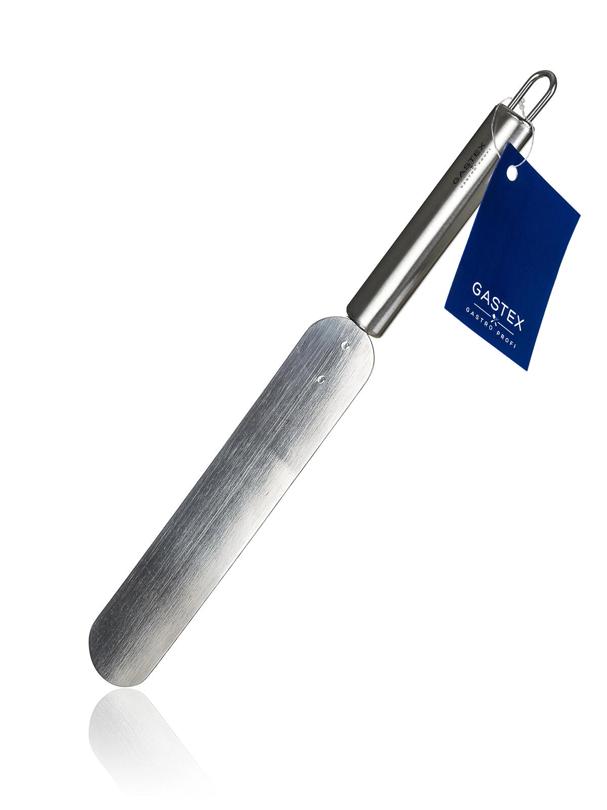 La spatule de lissage professionnelle AZORA en acier inoxydable de qualité facilite le lissage précis des crèmes et glaçages sur gâteaux et pâtisseries. Grâce à sa longueur de 30 cm et sa largeur de 3,5 cm, elle couvre une plus grande surface, dispose d’un œillet pratique pour la suspension, offre une entretien facile et est compatible lave-vaisselle. La gamme GASTEX est conçue pour les professionnels comme pour les pâtissiers à domicile.