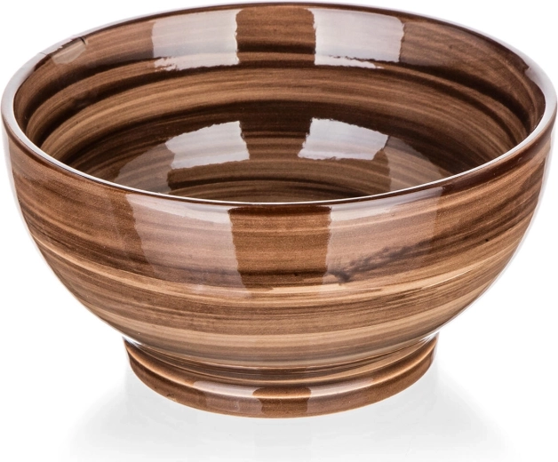 Bol en céramique élégant PALAS d’un diamètre de 14,3 cm et d’une capacité de 610 ml, idéal pour le petit-déjeuner, les soupes et les encas. Grâce à sa glaçure résistante, il se nettoie facilement et est compatible lave-vaisselle et micro-ondes. Son coloris marron à rayures apporte une touche naturelle et élégante à votre table.