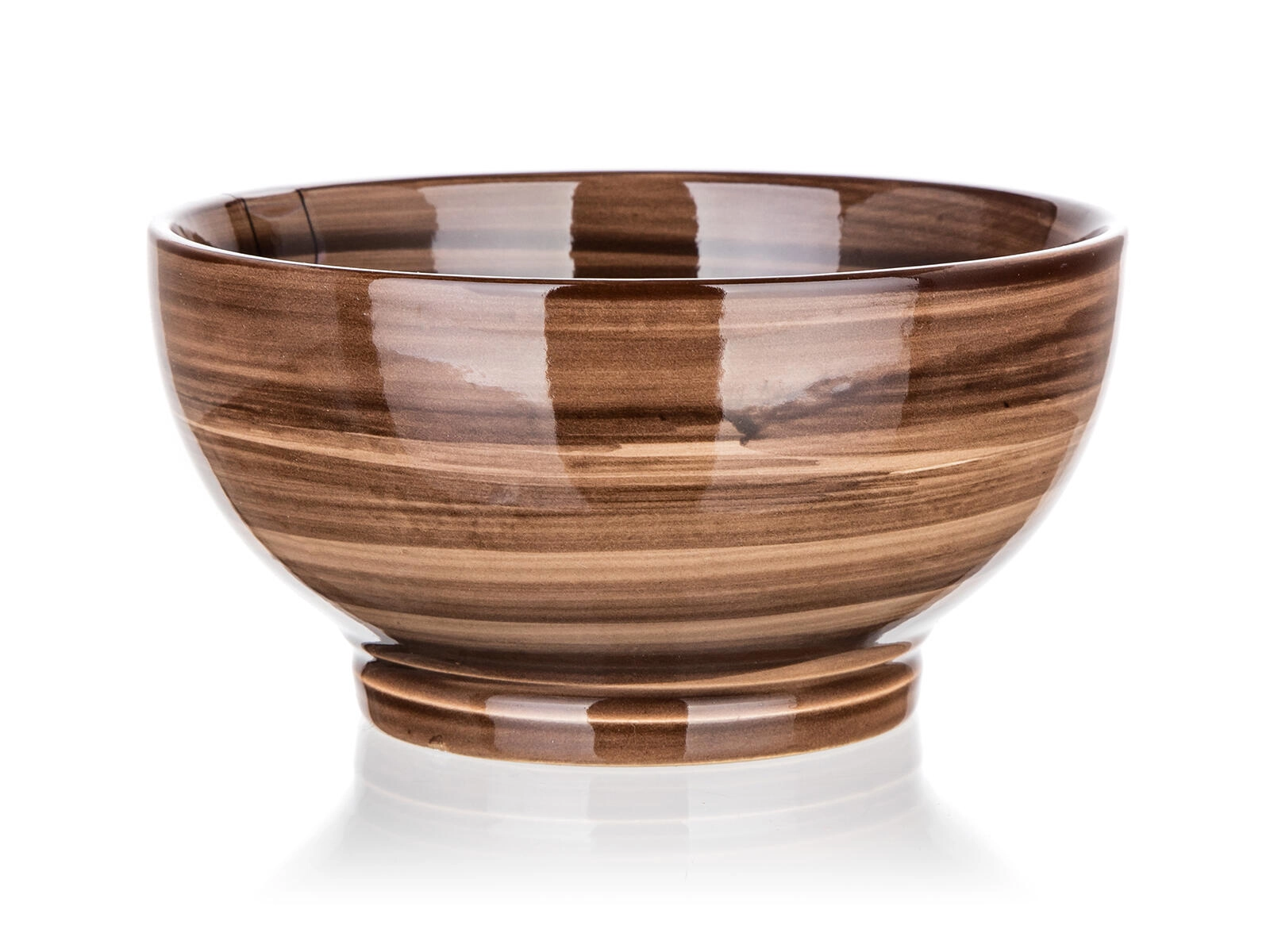 Ce bol polyvalent à glaçure marron et décor finement rayé est parfait pour un usage quotidien. Son pied stable et sa large ouverture garantissent un service agréable et un nettoyage facile, tandis que la céramique de qualité conserve bien la chaleur.