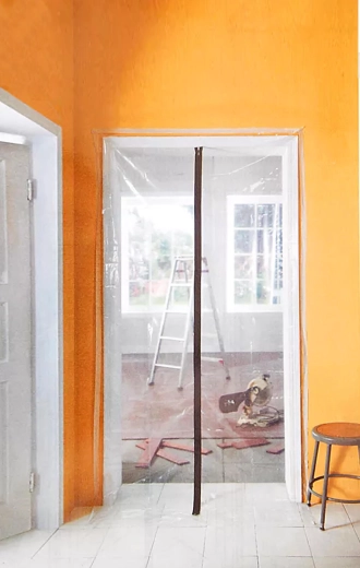 Film pare-poussière pratique avec fermeture éclair pour l’étanchéité temporaire des ouvertures de porte lors de rénovations et de travaux de nettoyage. Limite de manière fiable la propagation de la poussière vers les autres pièces et permet un passage aisé grâce à la fermeture éclair intégrée. Installation rapide, ouverture refermable et matériau LDPE résistant pour un environnement plus propre et plus sûr.