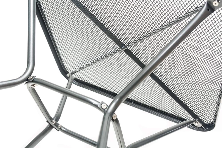 Le plateau en treillis métallique facilite l’écoulement de l’eau et un séchage rapide, pour que la table soit prête à l’emploi peu après la pluie.