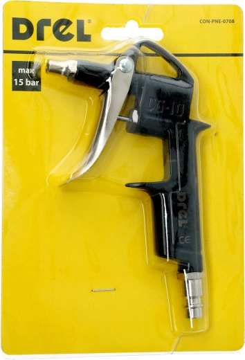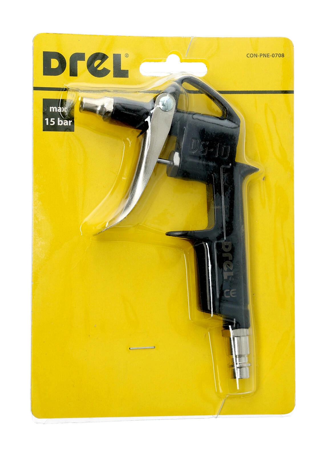 Pistolet de soufflage compact Drel pour un nettoyage et un séchage rapides à l’air comprimé. Offre une pression maximale de 15 bar, un corps en aluminium pour plus de robustesse, une buse courte de 20 mm pour un travail précis et un raccord rapide 1/4" pour une connexion facile.