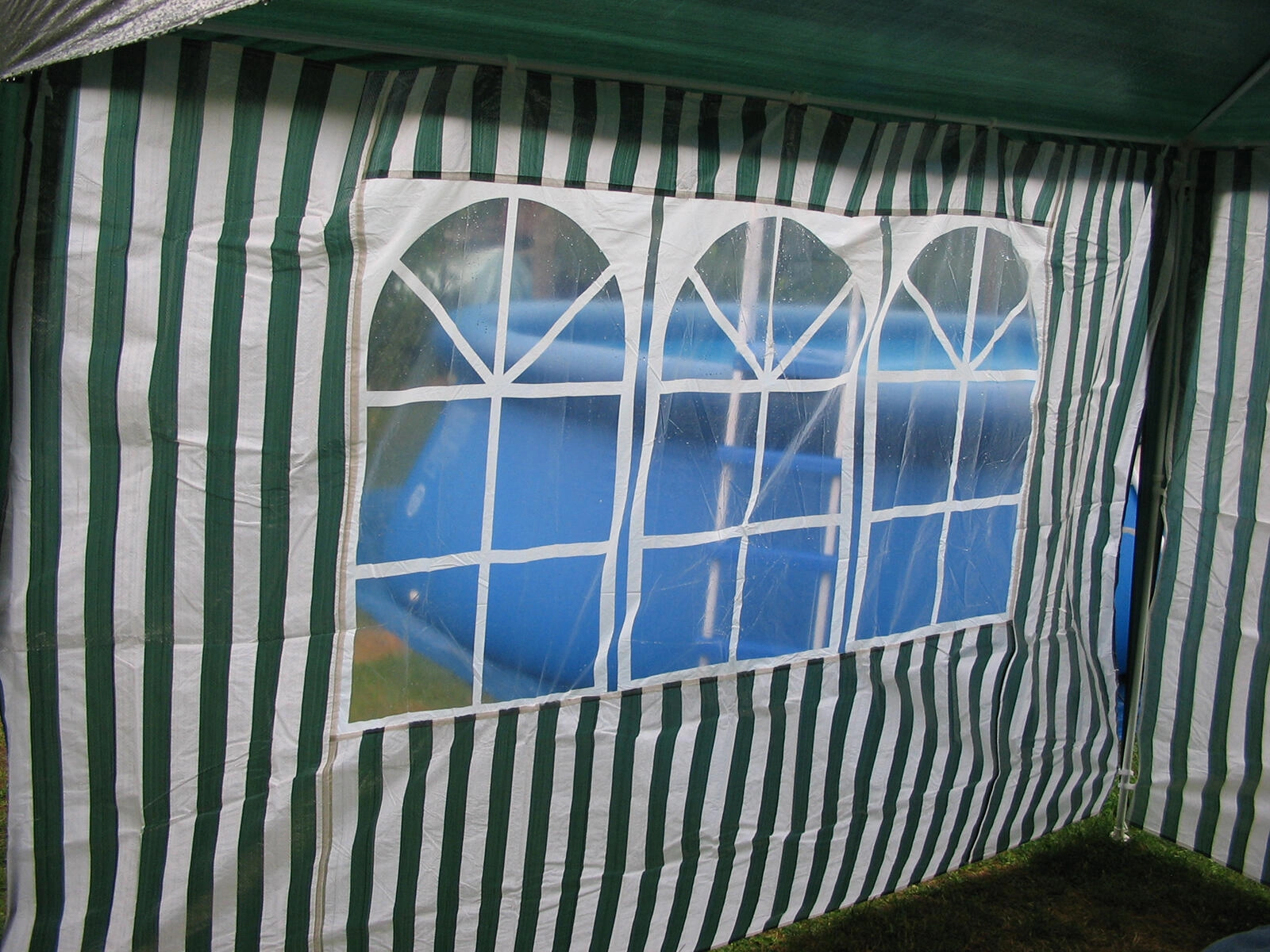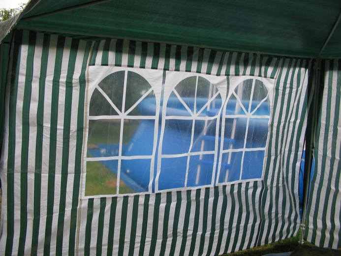 Paroi latérale pour tonnelle 295 × 190 cm avec fenêtres – rayures blanc‑vert