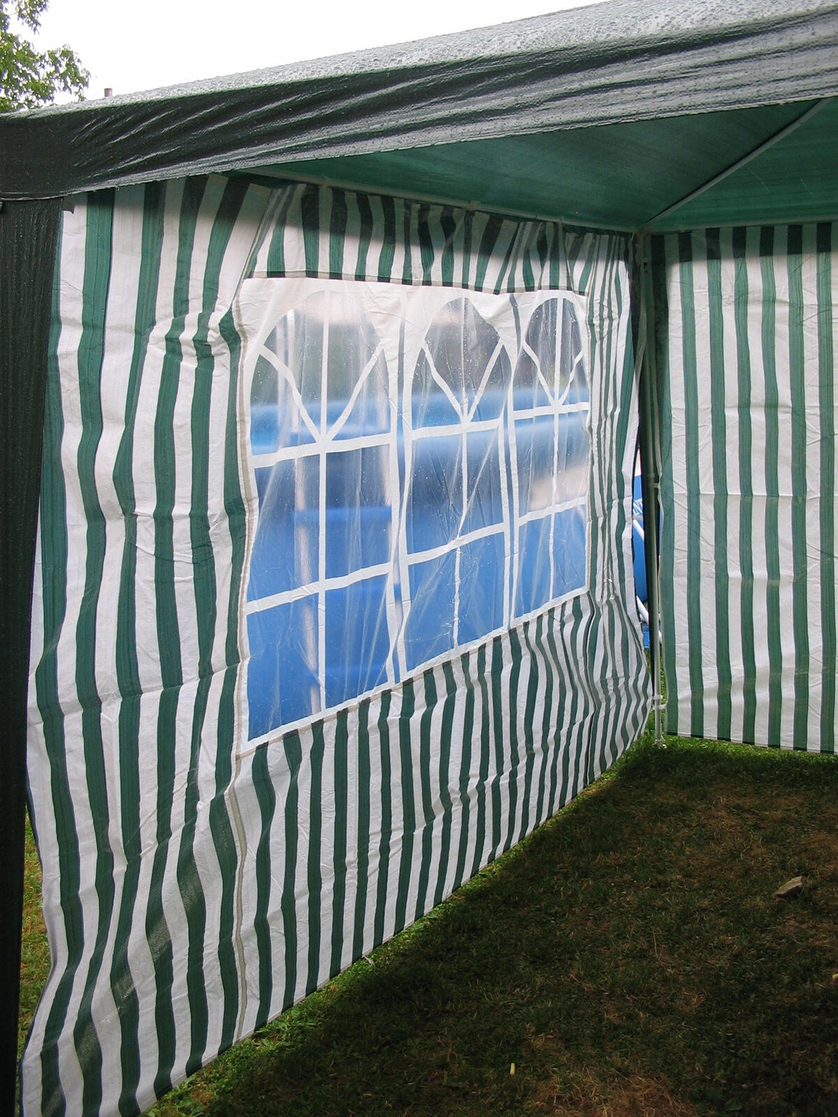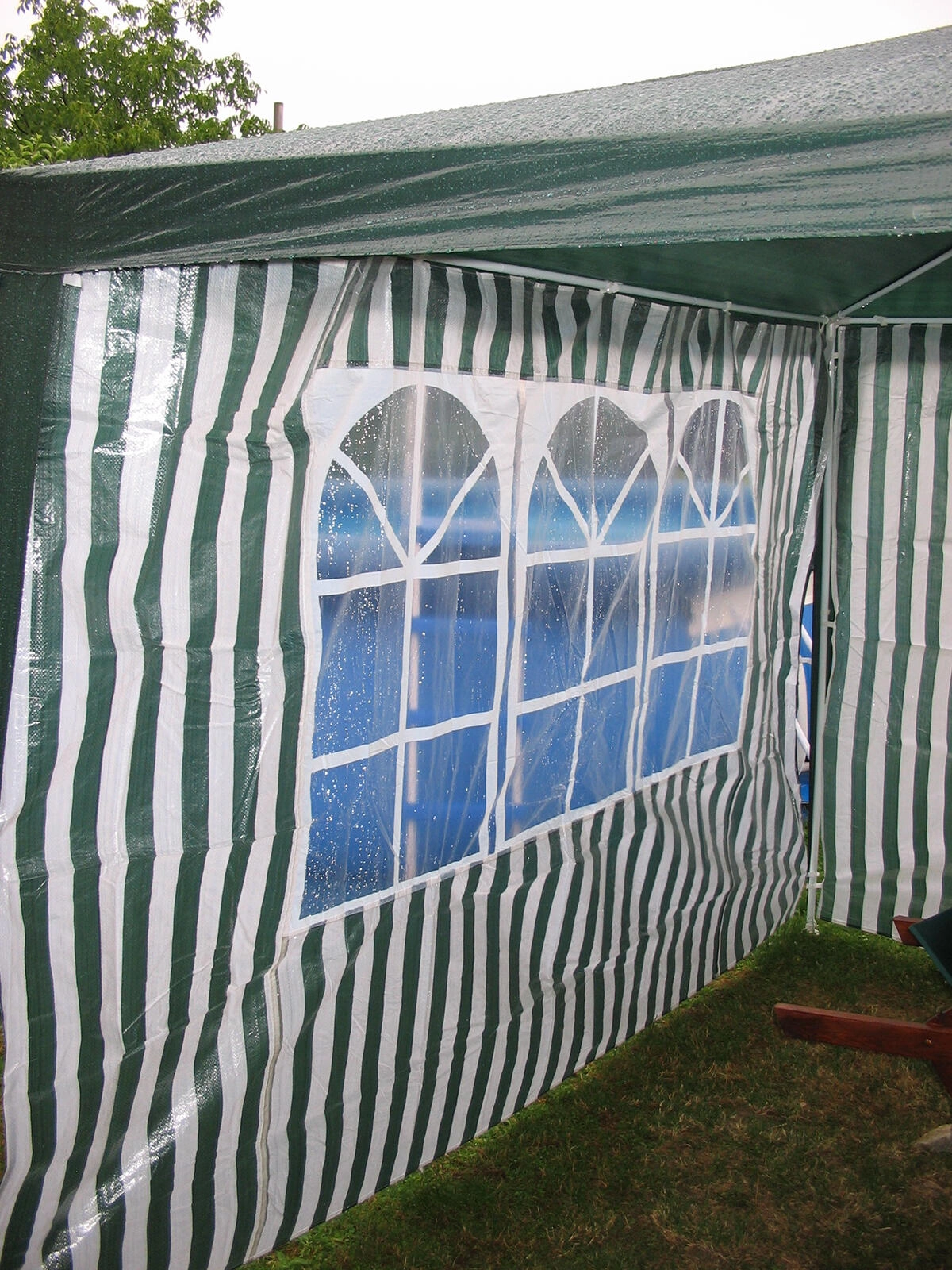 Paroi latérale pratique pour tonnelles de jardin et tentes de réception de dimensions 295 × 190 cm avec trois fenêtres en PVC transparent. Le matériau PE 100 g/m² résistant protège du vent et des petites averses, tandis que les fenêtres laissent passer assez de lumière du jour. Accessoire idéal pour les tonnelles 3 × 3 m au design élégant à rayures blanc‑vert.