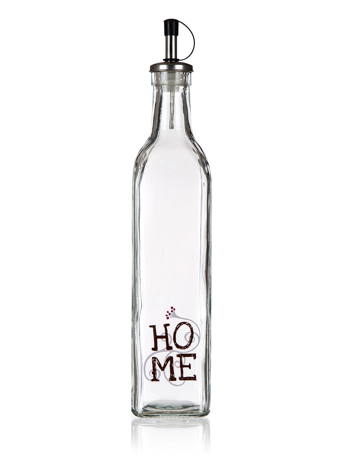 Pratique bouteille à huile en verre de 500 ml avec décor HOME qui facilite le dosage et le stockage de l’huile. Grâce à la buse verseuse en métal avec bouchon en plastique et joint d’étanchéité, vous versez avec précision, propreté et sans gouttes.