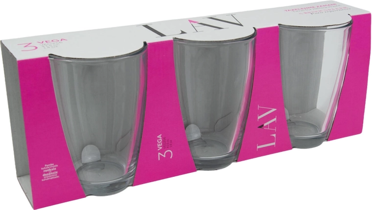 Verres transparents VEGA universels d’un volume de 415 ml, en emballage pratique de 3 pièces, idéaux pour l’eau, les citronnades et les boissons mixtes. Grâce à leur forme haute et leur prise en main confortable, ils conviennent parfaitement à un usage quotidien comme au service des invités.