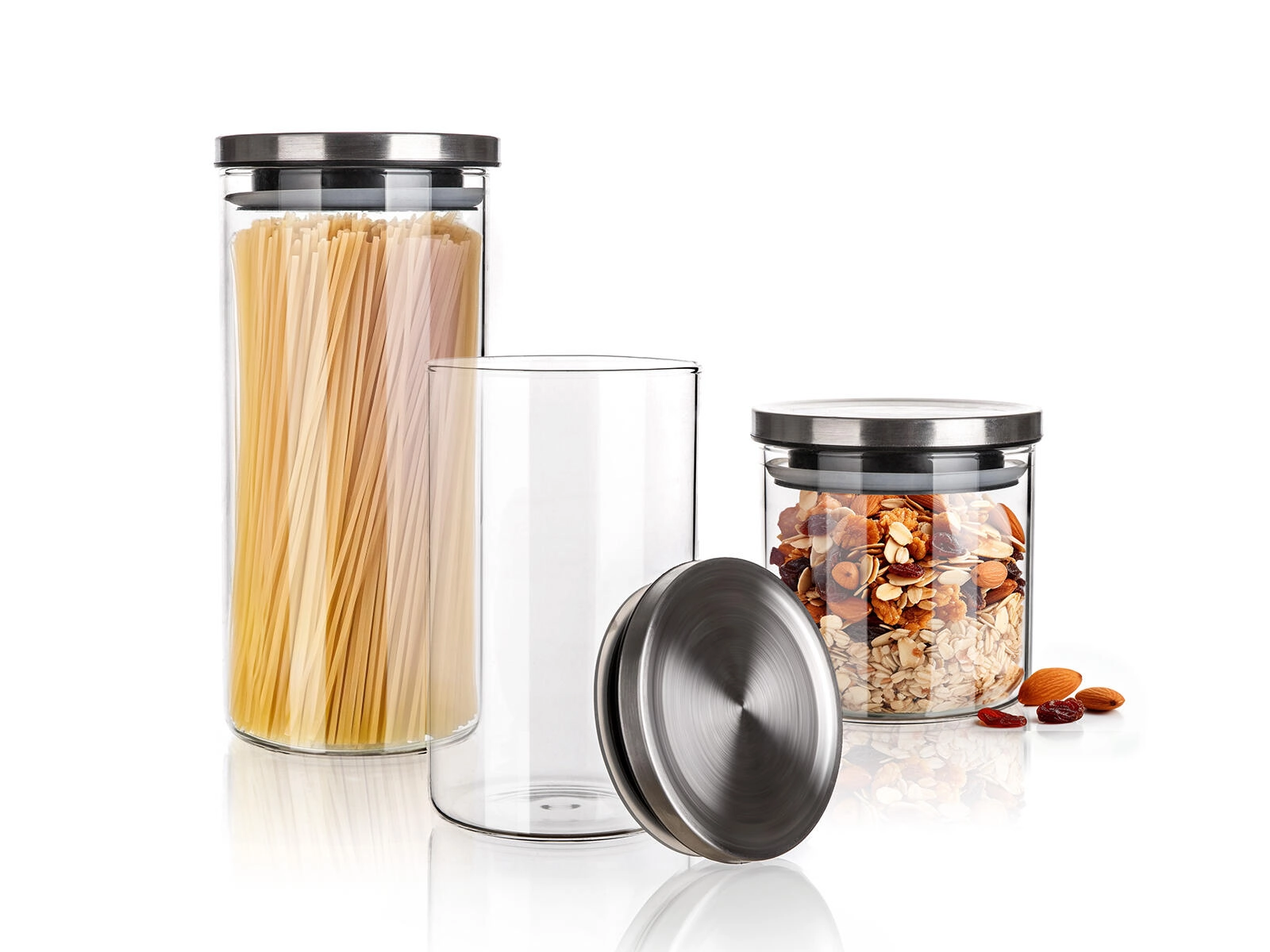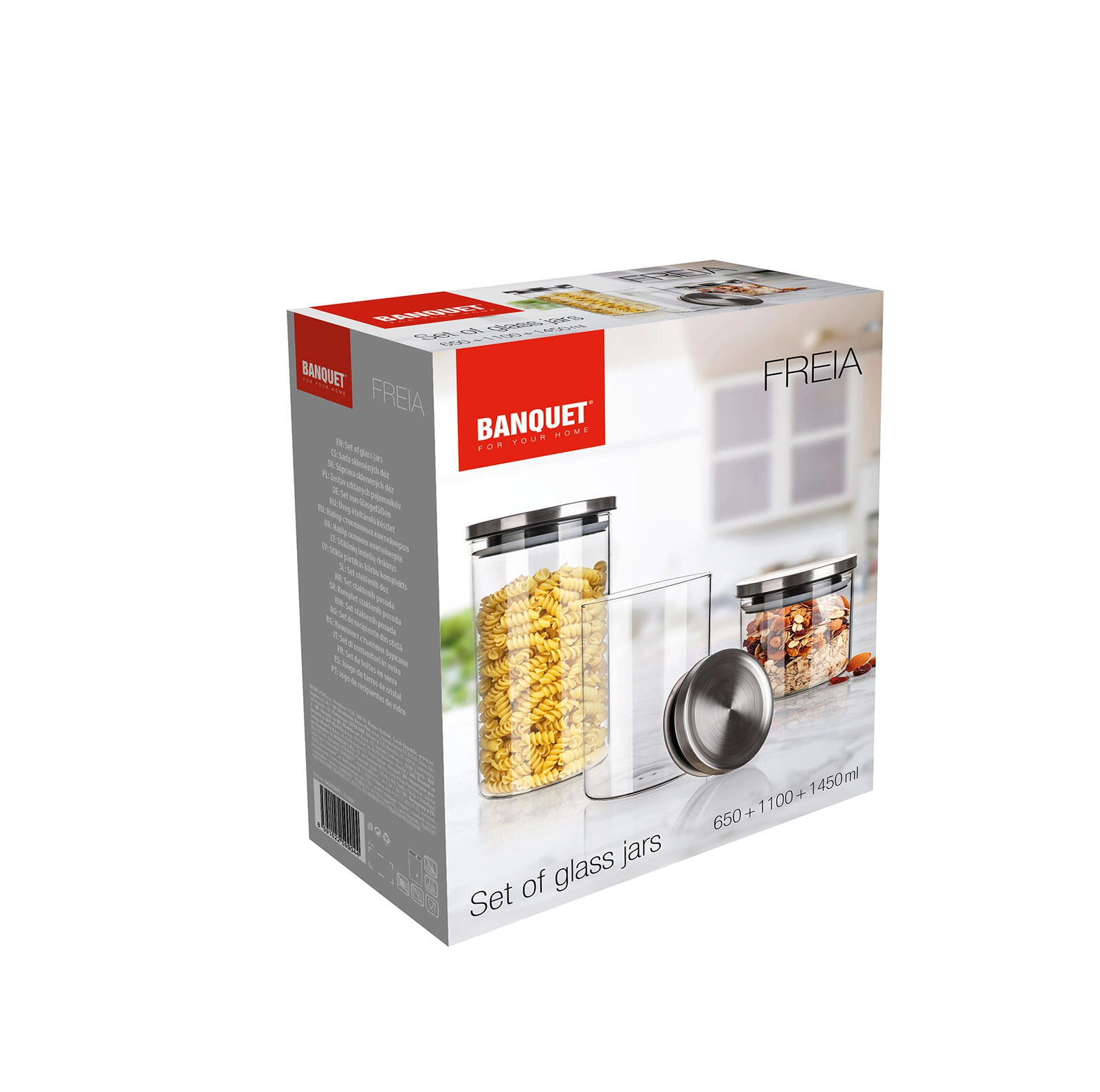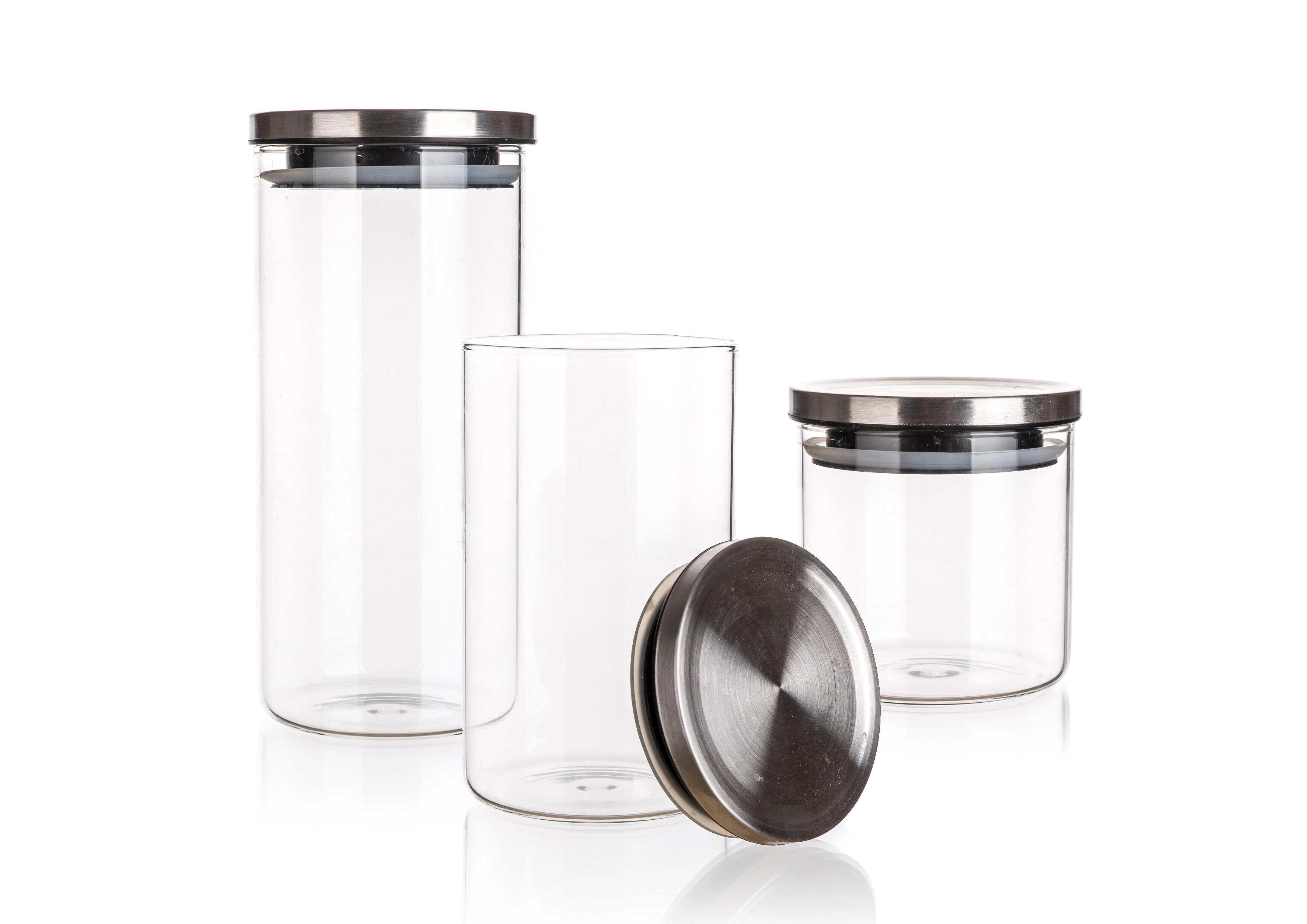 Ensemble de bocaux en verre FREIA avec couvercle en acier inoxydable, 3 pièces (0,65 l + 1,1 l + 1,45 l)
