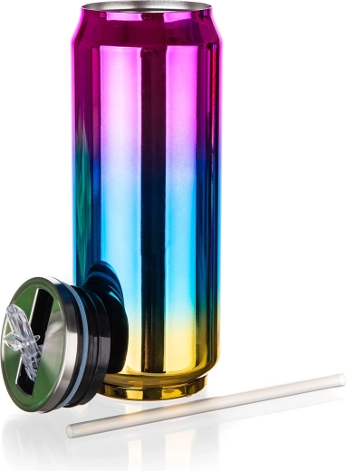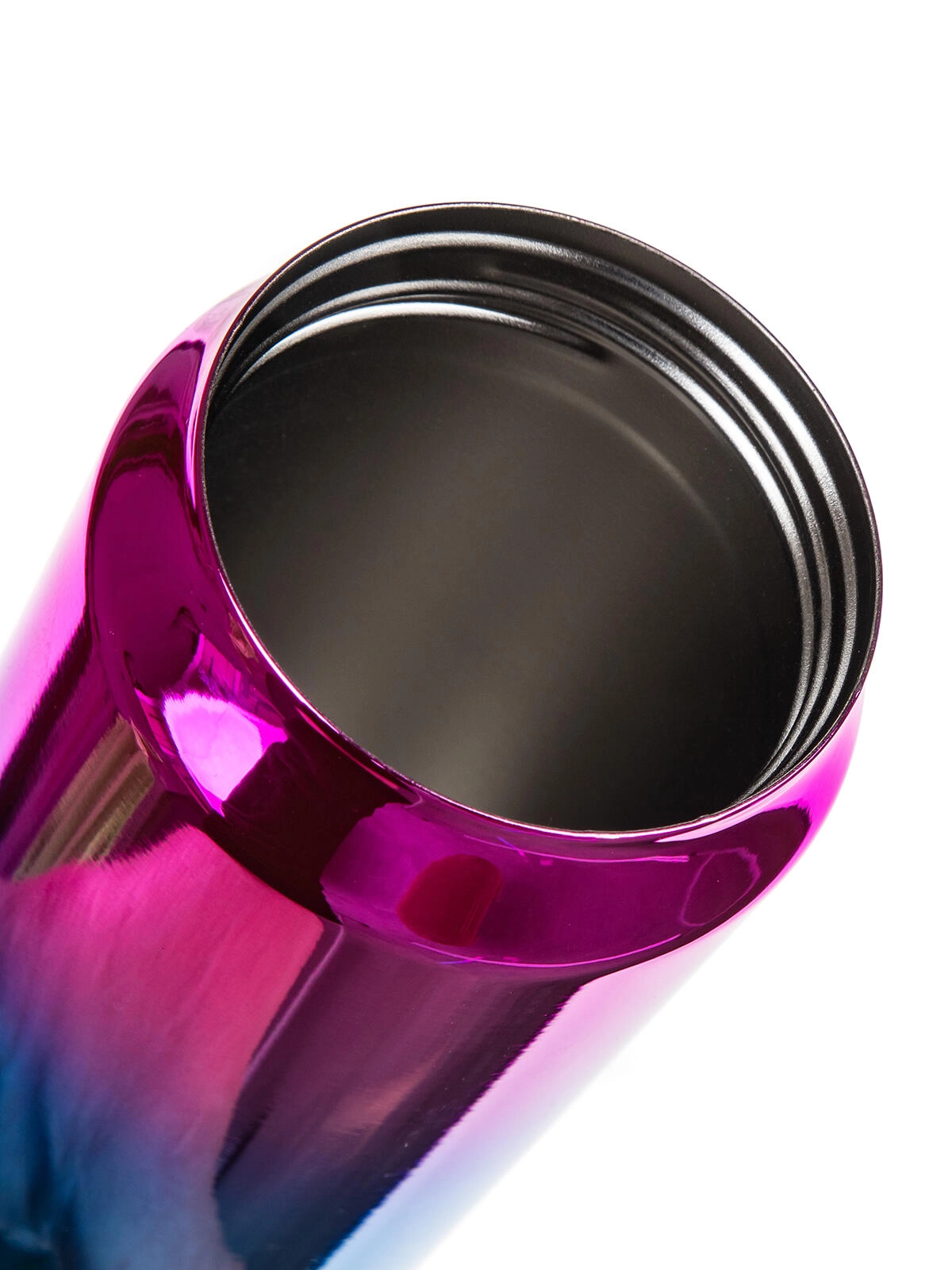 Un dégradé brillant du rose vers des tons bleus et jaunes attire l’œil au premier regard et fait de cette canette isotherme un accessoire moderne au quotidien.