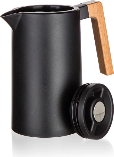 La carafe isotherme Joyce allie un design moderne en noir à une fonctionnalité au quotidien. Les parois inox à double épaisseur avec isolation sous vide maintiennent efficacement la température, tandis que le couvercle à verrou rond permet de verser d’une simple pression – sans dévisser ni perdre de chaleur.