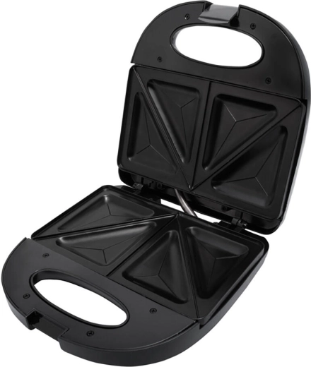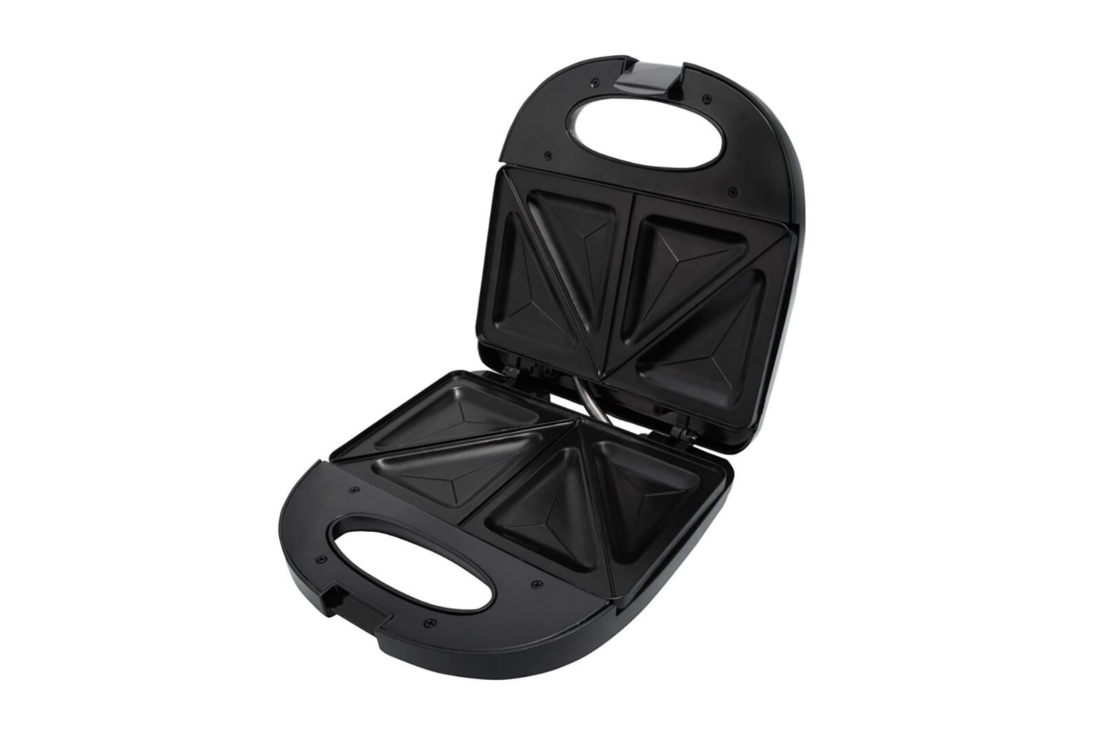 Appareil à sandwichs double pratique pour préparer des toasts triangulaires croustillants. Il offre des plaques antiadhésives pour un nettoyage facile, une régulation automatique de la température et une indication lumineuse du fonctionnement et du chauffage. Grâce à sa poignée thermiquement isolée, l’utilisation est sûre et confortable.