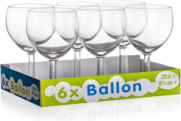 Élégants verres à vin d’une contenance de 250 ml en set de 6 pièces, au design intemporel, en verre hollandais de qualité, pour une utilisation quotidienne comme pour les grandes occasions. Grâce au bords trempés, les verres sont résistants, offrent une longue durée de vie et leur forme arrondie (ballon) met parfaitement en valeur les arômes du vin.